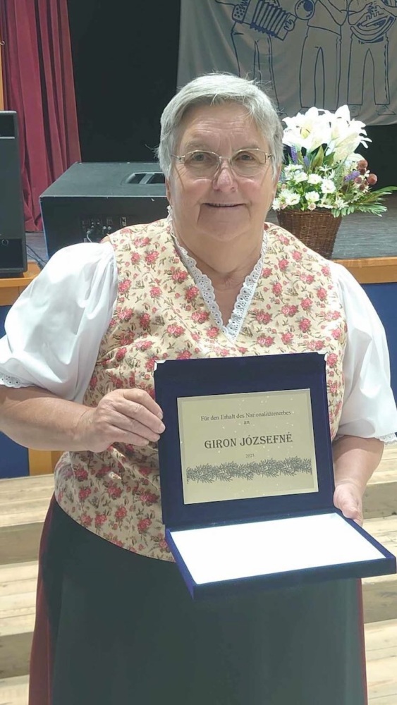 Traditionsgemäß begann die Veranstaltung mit einer deutschsprachigen Messe, Zelebrant war Zoltán Tál. Der Pfarrer aus Keszthely wurde vor 25 Jahren zum Priester geweiht, so war sein Jubiläumssegen etwas ganz Besonderes und Bewegendes für die Gläubigen. Nach der innigen Messe segnete er den Preis, den die Deutsche Selbstverwaltung von Herend an Maria Giron für ihre langjährige Verdienste verlieh. Frau Giron war höchst überrascht, als sie erfuhr, dass die 25 Jahre, in denen sie die Kleider für die zwei Christkindl-Gruppen der Stadt in Stand hält, bei diesem Anlass gewürdigt wurden.