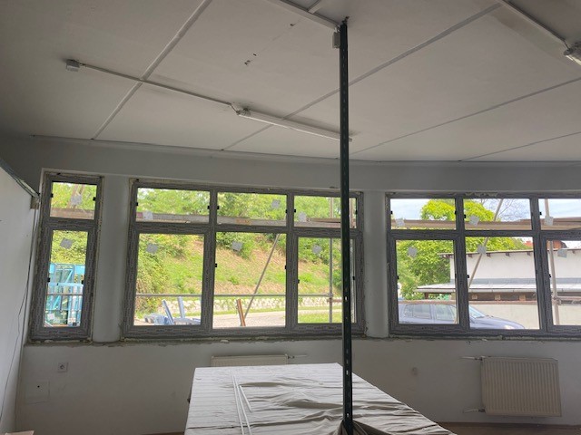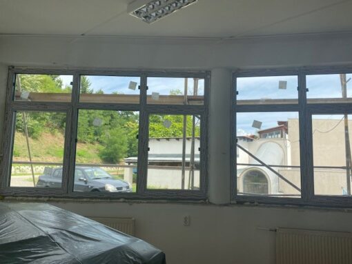 - Austausch der alten Fenster in den neun Klassenzimmern auf der Südseite des Komplexes durch neue Fenster mit Beschattung.