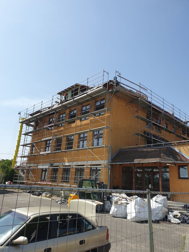 In der ersten Phase des Projekts wurde das Dach des Wohnheims, der Küche und des Restaurantflügels links vom Haupteingang mit Eigenkapital finanziert. Die Firma „Pilisi Pléh-Boy Kft.”, die im Rahmen des öffentlichen Beschaffungsverfahren zum Gewinner ernannt wurde, hat den Vertrag bis zum Ablauf des technischen Verfahrens der Übergabe am 5. Januar 2022 erfüllt.