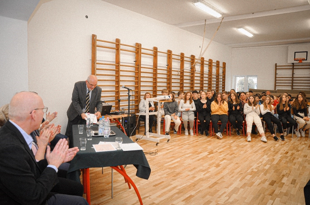 Die Anwesenden begrüßte Grundschuldirektorin Ibolya Csuvarszki-Sarkadi, Bürgermeister György Szelezsán sowie der Vorsitzende der DNSV Elek, László Wittmann. Danach hielt Dr. Lajos Abonyi, Vorsitzender der deutschen Selbstverwaltung von Orosháza, einen interessanten Vortrag über die Besiedlung von Elek vor 300 Jahren und die seitdem vergangenen drei Jahrhunderte, begleitet mit schönen Gedichten, vorgetragen von Ilona Császár, dem Mitglied der deutschen Selbstverwaltung von Orosháza. Nach diesem Vortrag berichtete Tamás Klemm, Grundschullehrer in Elek, über das in der Grundschule durchgeführte Projekt mithilfe einer Präsentation und vielen Fotos.
