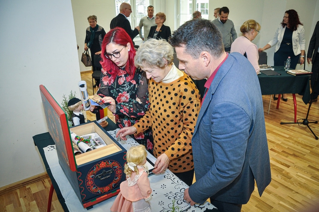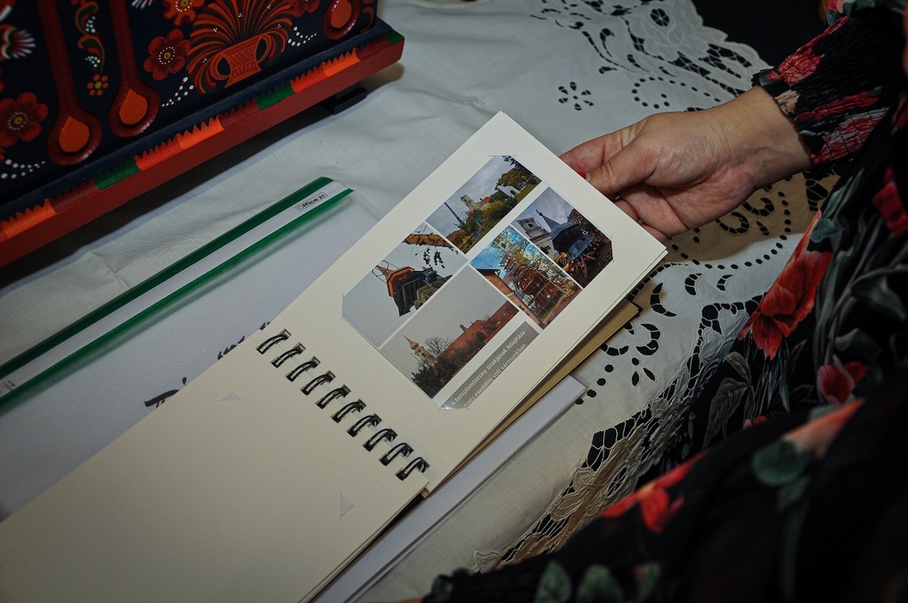 Anschließend legten wir die Gegenstände aus Elek und Orosháza in die Truhe, unter anderem ein Heft über die deutschen Heimatstuben in Elek, ein Plakat über die Nationalitätentätigkeit des Eleker Kindergartens, Dokumente zum Schicksal einer Eleker Familie sowie Fotoalbum über das Projekt in Elek.