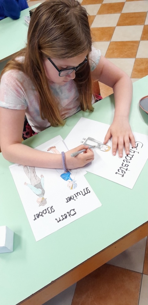 Mit den Viertklässlern erstellten wir ein schwäbisches Bildwörterbuch, in dem die Wörter in Frakturschrift geschrieben wurden. Es entstanden wunderschöne Zeichnungen, und die Frakturschrift erinnerte an die Welt der Sprachdenkmäler, Kodexe und Kulturen der damaligen Zeit.