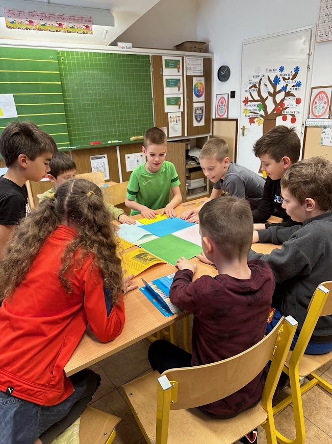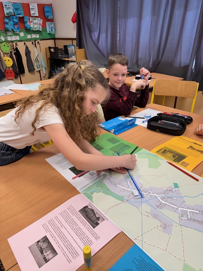 Aber wir begnügten uns nicht mit statischen Informationen: Wir setzten interaktive Methoden wie QR-Codes und Links ein, um den Schülern weitere interessante Fakten, Fotos und noch mehr Informationen zu bieten. Wir konzentrierten uns dabei nicht nur auf die traditionellen Attraktionen. Wir gestalteten auch den Kindergarten, den Fußballplatz, den Glockenturm und die Mühle interaktiv. Gemeinsam mit den Kindern planten und erstellten wir diese besonderen Elemente so , dass sie einen noch tieferen Einblick in das Leben und die Geschichte von Nana bekommen. Wir achteten auch speziell auf die typisch schwäbische Straßenstruktur von Nana. Wir untersuchten die Straßen, den Grundriss der Häuser und den Charakter des Dorfes, um das Leben und die Geschichte der örtlichen Gemeinschaft besser zu verstehen und zu erleben. Wir besuchten den Grabsteinpark, wo wir über die historischen Denkmäler der Siedlung und die Ruhestätten der ehemaligen Bewohner informiert wurden. Wir sahen uns die Namen an und fanden die Aufschriften Bierbaum, Krabacz, Forsthoffer. Die Kinder waren erfreut zu entdecken, dass Menschen mit diesen Namen immer noch im Dorf leben. Besondere Aufmerksamkeit legten wir auch auf die Kirche von Nana und den dahinter liegenden Kalvarienberg. Wir besuchten die Kirche, wo wir die charakteristischen Merkmale des Gebäudes bewunderten und einen Einblick in die lokalen religiösen und kulturellen Traditionen erhielten. Die Stille und der Friede in der Kirche beeindruckten uns tief. Dieses Projekt brachte uns nicht nur die Geografie und die Geschichte von Nana näher, sondern half uns auch, das kreative Denken der Kinder zu entwickeln und neue Wege des Teilens und Erforschens von Wissen zu lernen. Es war eine Freude zu sehen, wie die Kinder mit Begeisterung die im Herzen des Bakony-Gebirges liegende Perle entdeckten und das Projekt mit ihrer eigenen Kreativität bereicherten.