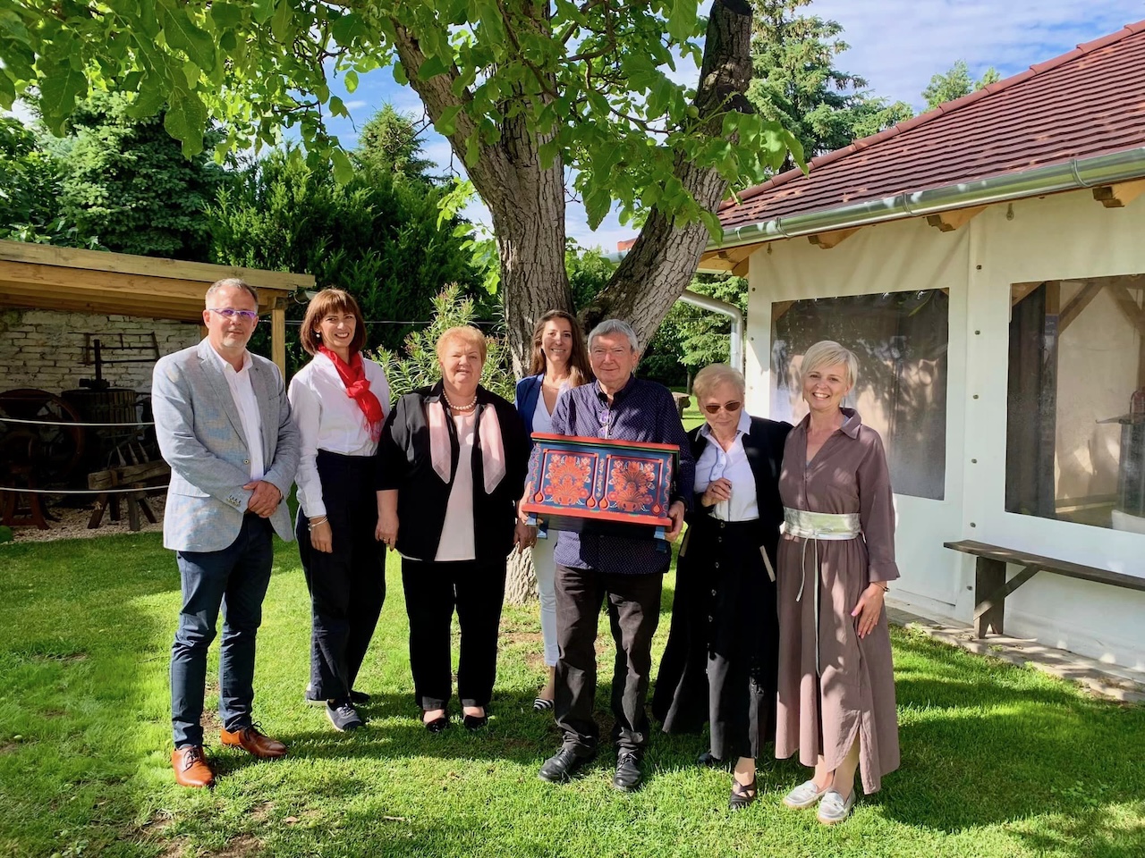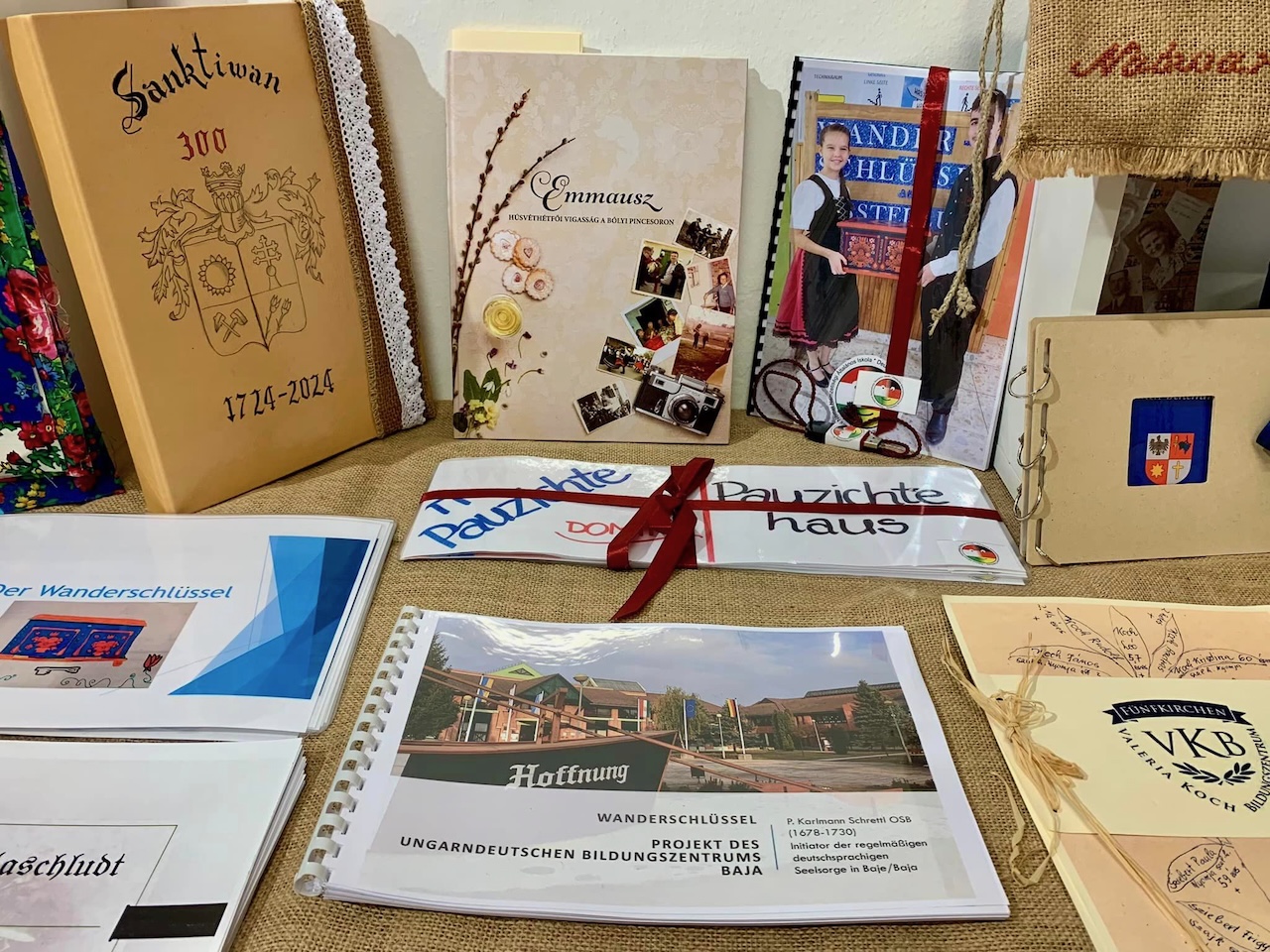 Die in der Truhe gesammelten Objekte wurden nun im Rahmen einer Abschlussveranstaltung im Jakob-Bleyer-Heimatmuseum ausgestellt. Zudem wurde ein Film präsentiert, der die ereignisreiche Reise des Wanderschlüssels zeigt und Eindrücke aus den beteiligten Orten vermittelt. Die landesweite Kampagne wurde mit den Zielen ins Leben gerufen, Wissen zu vermitteln, das Geschichtsbewusstsein zu schärfen, Gemeinschaft zu stiften, das Zusammengehörigkeitsgefühl zu stärken und ein breites Spektrum von Mitgliedern der ungarndeutschen Gemeinschaft einzubeziehen. Darüber sprachen bei der Abschlussveranstaltung Museumsdirektorin Dr. Kathi Gajdos-Frank, LdU-Vorsitzende Ibolya Hock-Englender und ihre Stellvertreterin Olivia Schubert, die mit der LdU-Arbeitsgemeinschaft Kommunikation die Wanderschlüssel-Kampagne vorantrieb.
