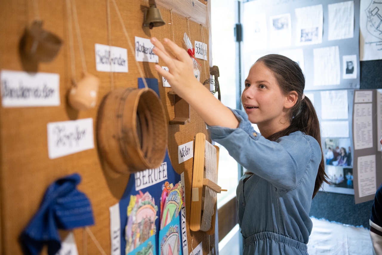 Zum Schluss legten wir jene Schätze (Domino, Wandschützer, Heft mit den Bildern der Ausstellung) in die Truhe, die die Kolleginnen im Volkskundeunterricht mit den Schülern angefertigt hatten. Nach dem Programm konnten sich die Gäste unsere Wanderschlüssel-Ausstellung ansehen.