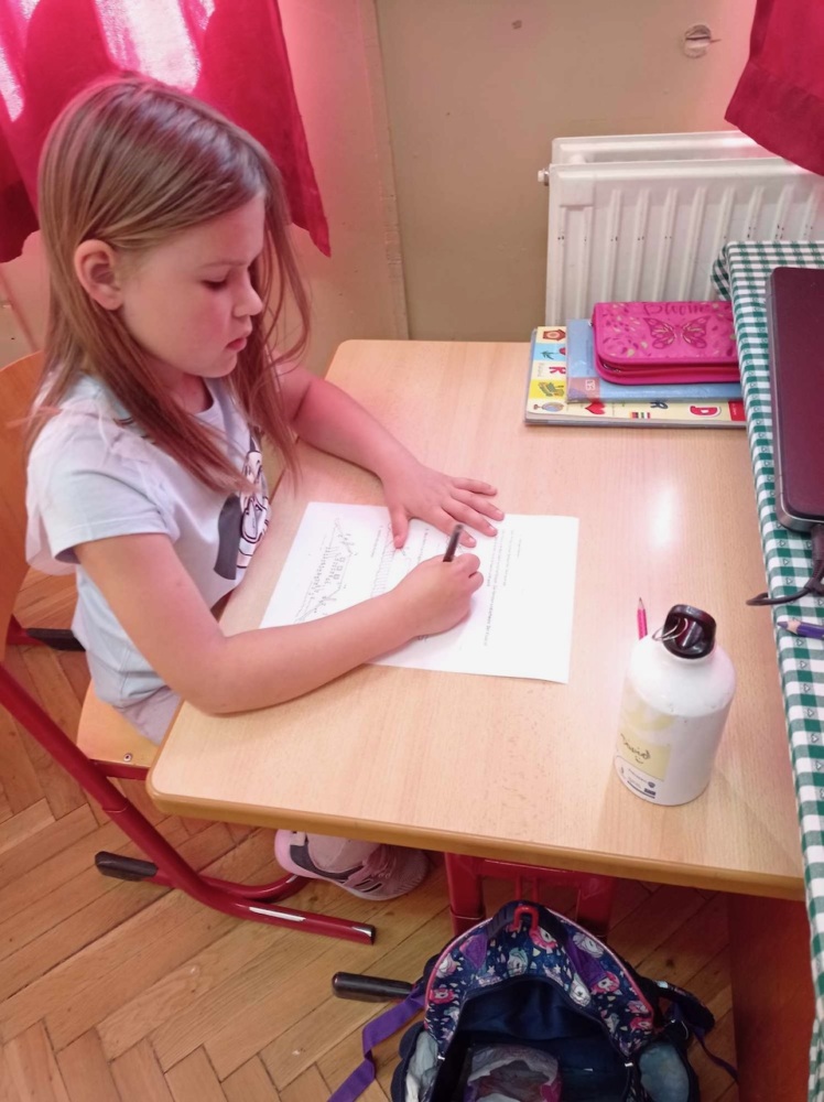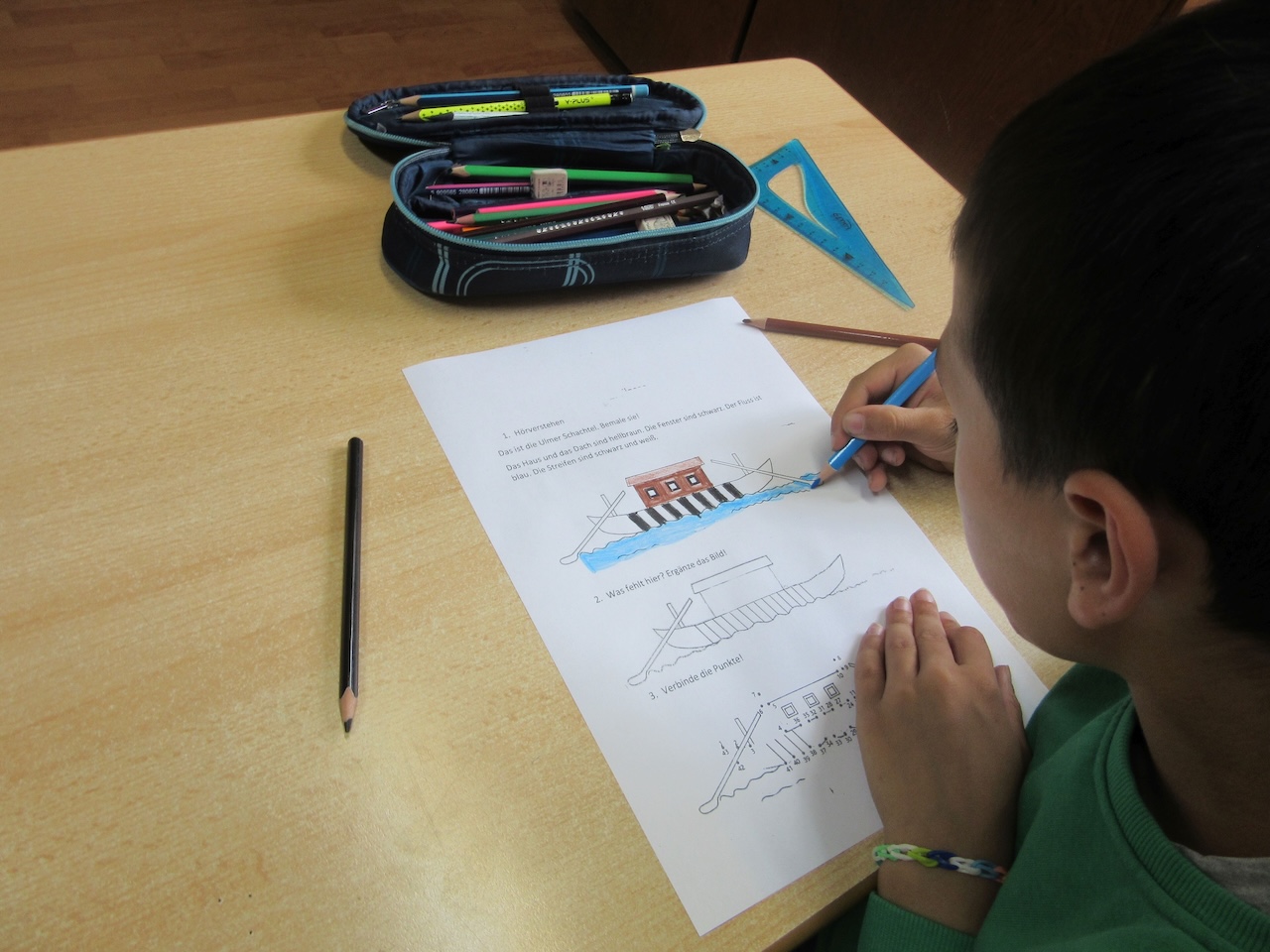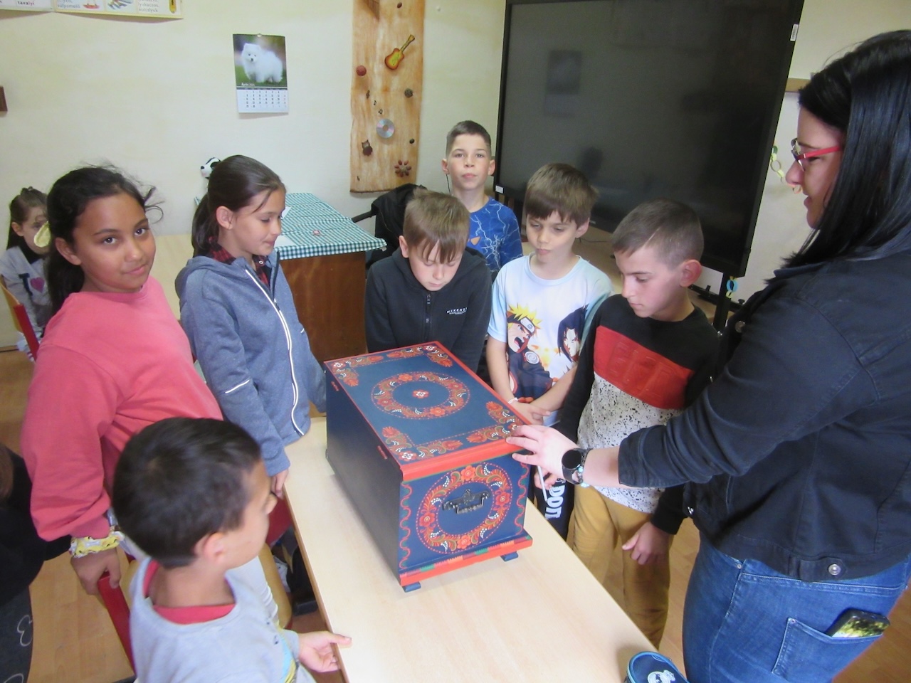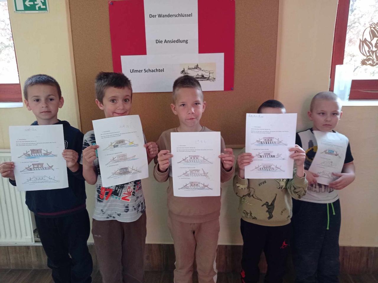 Die Schüler zeichneten den Wanderschlüssel, und aus den Illustrationen wurde eine Ausstellung erstellt. Die Schüler stellten auch eine PowerPoint-Präsentation zusammen. Zum Schluss legten wir kleine Erinnerungsstücke in die Wandertruhe.