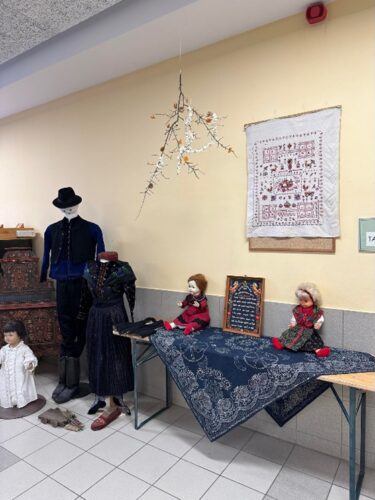 Während der Woche fanden zwei Veranstaltungen statt. Erzsébet Grőb geb. Gottschall aus Hartau/Harta und Júlia Sipos geb. Hermanutz aus Nadwar/Nemesnádudvar erzählten uns von ihren deutschen Wurzeln: Dank Tante Erzsike hatten wir auch ein „Mini-Museum” über Hartau bekommen. Sie war so nett und hat uns für unsere Nationalitätenwoche viele Stücke aus dem Museum gegeben.