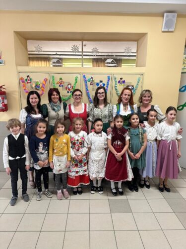 Unsere Nationalitätenschule befindet sich in Kalocsa, einer Kleinstadt in Südungarn, nicht weit von der Donau. Die Stadt hat eine mehr als 1000 Jahre alte Geschichte. König Stephan I. hat hier ein Erzbistum gegründet, und der Erzbischof wohnt auch heute noch in dieser Stadt. In Kalocsa gibt es insgesamt fünf Grundschulen, aber nur in einer wird Deutsch als Nationalitätensprache unterrichtet, mit etwa 540 Schülern. Ich arbeite hier als Lehrerin im Nationalitätenprogramm. Die Kinder haben fünf Deutschstunden und eine Volkskunde pro Woche. In den Klassen der Unterstufe sind die Kinder noch sehr motiviert und sehr offen.