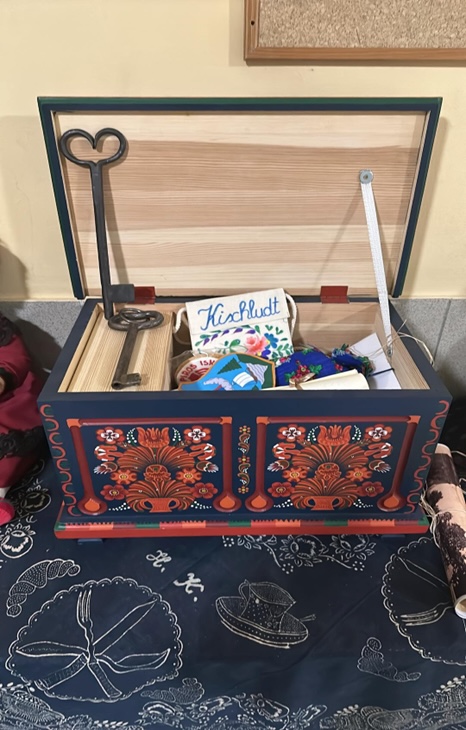 Das zweite Hauptthema war der Wanderschlüssel. Am Montag, dem 29. Januar 2024 kam dieser in seiner schicken Truhe in Kalocsa an. In jeder Grundschule legten die Kinder etwas in die Truhe (z. B. ein selbstgemaltes Bild, Fotos, usw.) und so ging die Truhe weiter in die nächste Stadt oder ins nächste Dorf. Der Wanderschlüssel und die Truhe erinnerten uns an die Geschichte der Ungarndeutschen, die vor rund 300 Jahren aus Deutschland nach Ungarn ausgewandert waren. Dies ist ein wichtiger Teil in der Geschichte, wir alle sollten uns daran erinnern können.