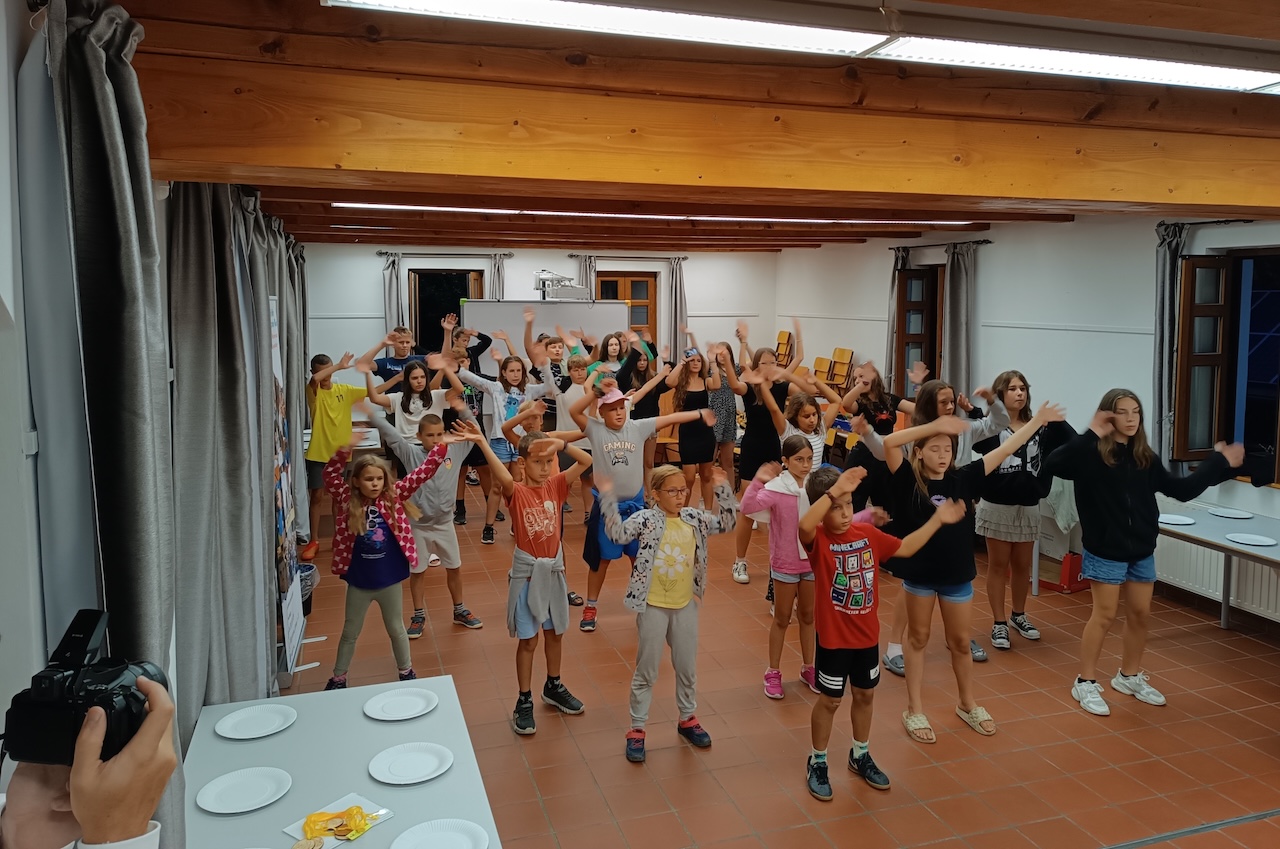Ein Highlight des Camps war der Ausflug zum Plattensee/Balaton, wo die Kinder im Wasser platschen, rutschen und Tretboot fahren konnten. Auch nachmittags gab es viel zu erleben: Gemeinsam schauten wir uns Filme an, lernten die örtliche traditionelle ungarndeutsche Tracht kennen, hörten hiesige Lieder an und tanzten in der Tanzstube. Ein besonderes Abenteuer bot die Suche nach den „verschwundenen“ Jugendleitern auf dem gesamten Gelände des Camps.