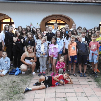 Ein Highlight des Camps war der Ausflug zum Plattensee/Balaton, wo die Kinder im Wasser platschen, rutschen und Tretboot fahren konnten. Auch nachmittags gab es viel zu erleben: Gemeinsam schauten wir uns Filme an, lernten die örtliche traditionelle ungarndeutsche Tracht kennen, hörten hiesige Lieder an und tanzten in der Tanzstube. Ein besonderes Abenteuer bot die Suche nach den „verschwundenen“ Jugendleitern auf dem gesamten Gelände des Camps.