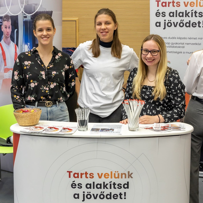 Neben der Audi Hungaria Zrt. erfreuten sich auch BOS, KACO und REHAU über regen Zulauf, diese Unternehmen sind wichtige Partner der schulinternen kaufmännischen Berufsausbildung, die sich in der praktischen Ausbildung der zukünftigen Fremdsprachigen Industriekaufleute engagieren. Die zweijährige duale Berufsausbildung nach deutschem Vorbild, die als Erfolgsmodell bezeichnet werden kann, wurde vor sieben Jahren eingeführt und bietet jungen Menschen ein breit gefächertes fachliches Ausbildungsspektrum und hervorragende berufliche Kompetenzen.