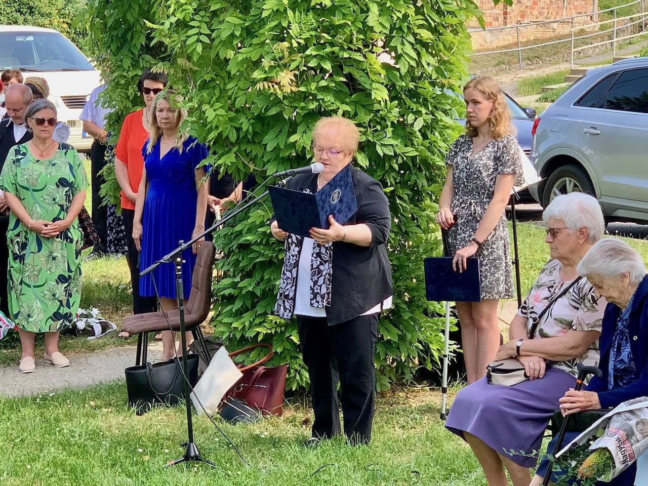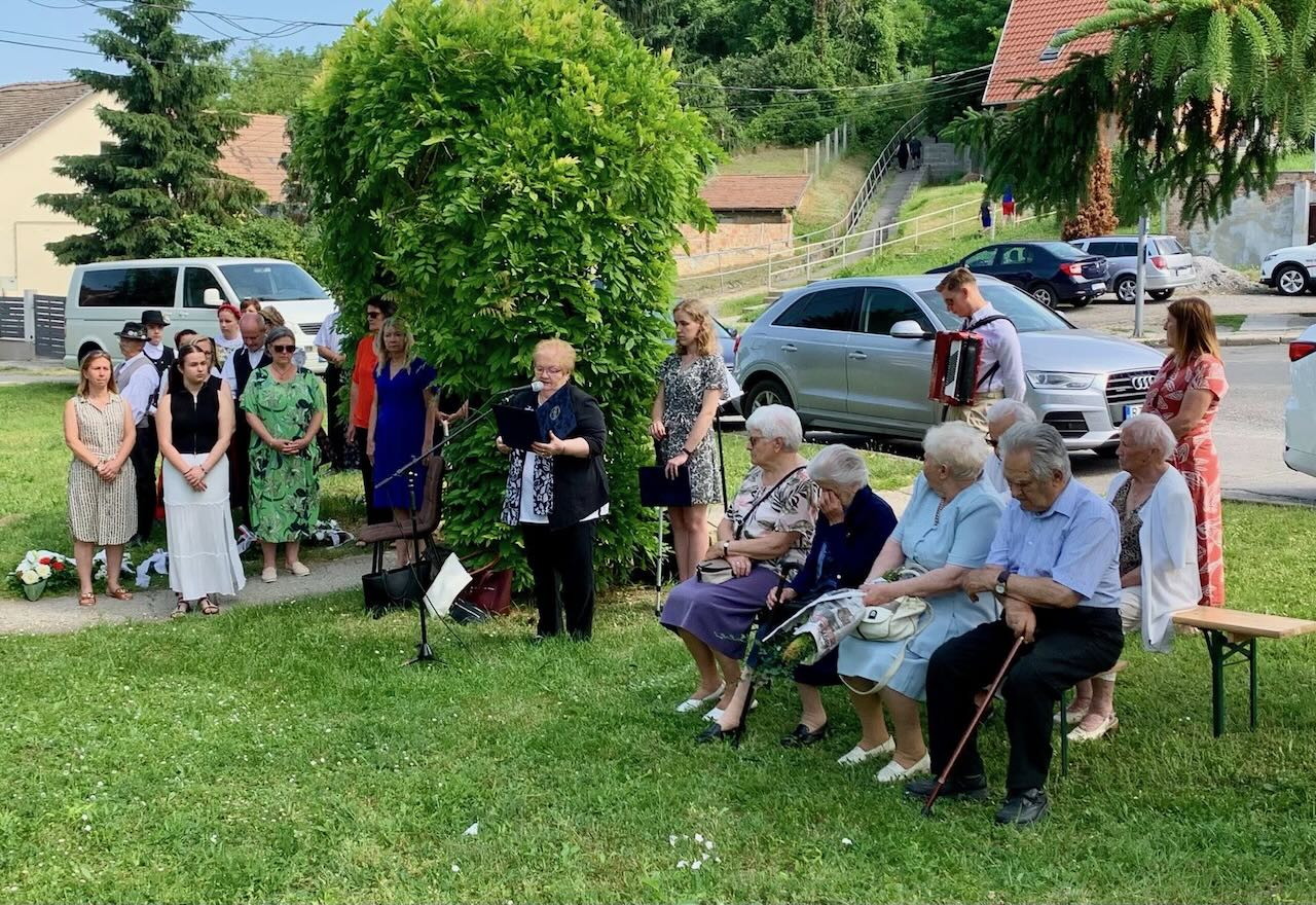 Im Rahmen der mit einer Kranzniederlegung verbundenen Feier hielt Ibolya Hock-Englender, die Vorsitzende der Landesselbstverwaltung der Ungarndeutschen, eine Festrede. Mit bewegenden Worten erinnerte sie an die Opfer und betonte die gemeinschaftsbildende Kraft des gemeinsamen Gedenkens. Darüber hinaus hob sie hervor: