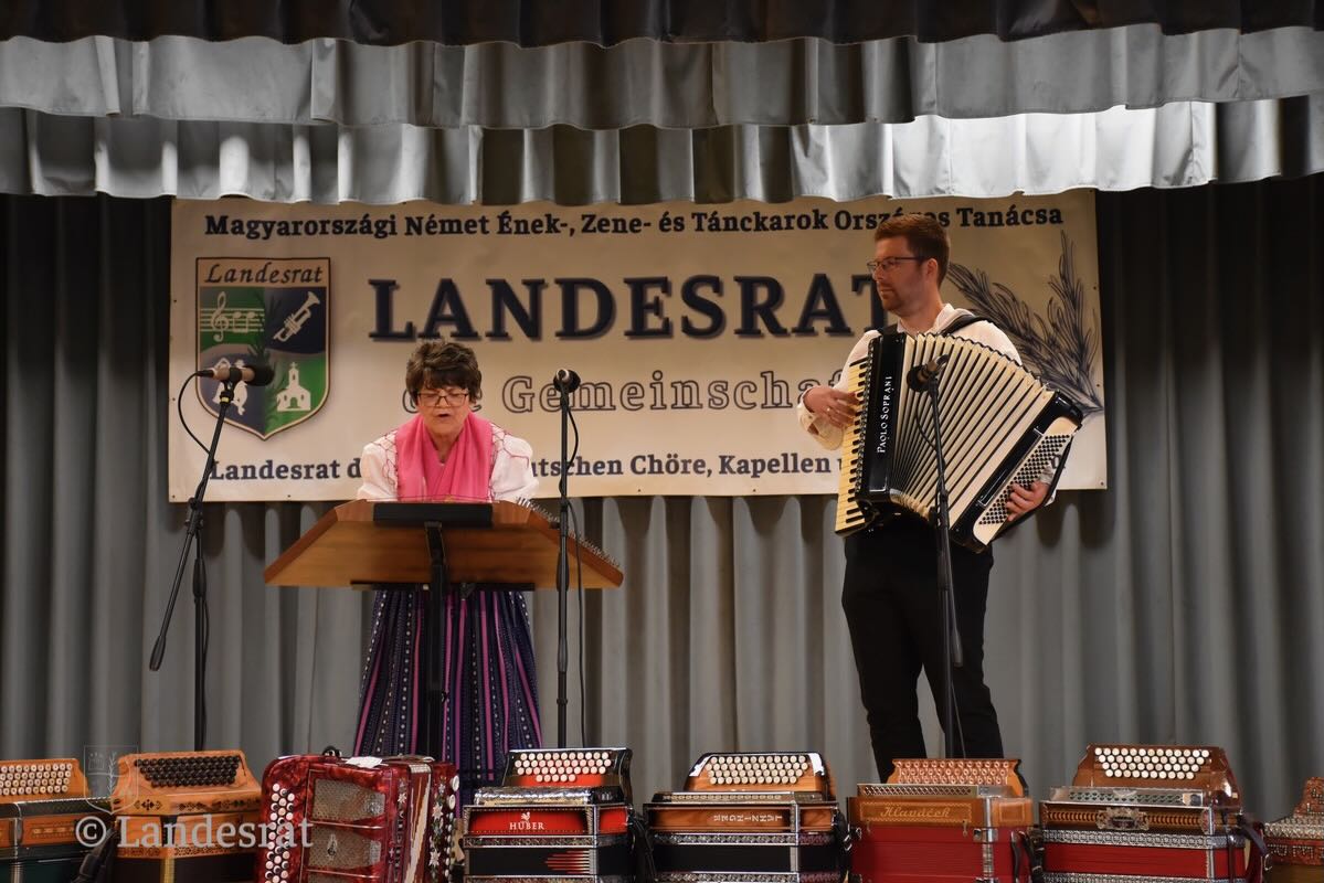 Als Gastgeberin des Festprogramms rief Erika Rierpl, stellvertretende Vorsitzende der örtlichen Deutschen Nationalitätenselbstverwaltung, zunächst Ildikó Winhardt auf die Bühne. Ihr Hackbrettspiel wurde von Attila Dósa auf dem Akkordeon begleitet. Als einzigartige Melodie ihrer Darbietung trug sie auch ihre Eigenkomposition mit dem Titel „So ist das Leben…“ vor.