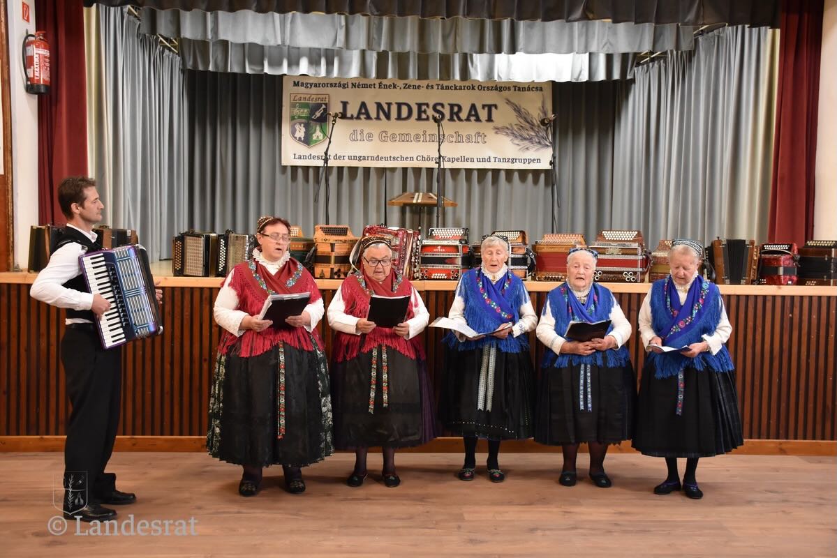 Es folgten Lieder, vorgetragen vom Branauer Frauenchor, begleitet von Gábor Pappert auf dem Akkordeon. Dann schneller Wechsel wieder zum Akkordeon: József Mehringer, Vilmos Steinmann und Dániel Kovács standen erneut auf der Bühne.