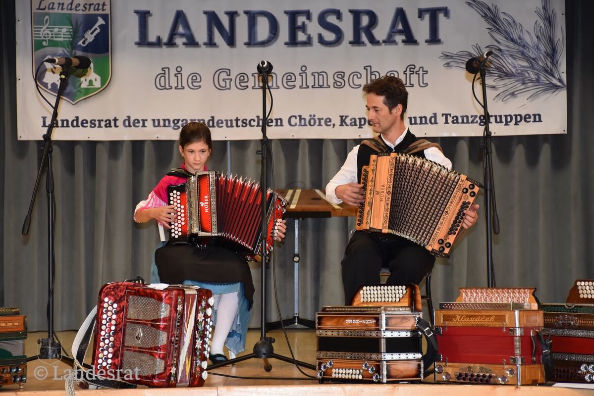 Die Produktion des Vater-Tochter-Duos aus Salkau ist seit Jahren ein fester Bestandteil des Treffens. Es ist herzerwärmend zu sehen, wie sich Jahr für Jahr die besondere Beziehung zwischen Anna Pappert und Gábor Pappert vor unseren Augen formt, die auch durch das ungarndeutsche musikalische Erbe ihrer Vorfahren geschmiedet wurde.