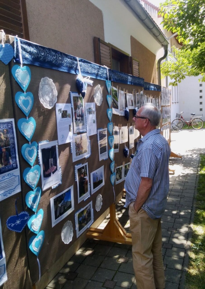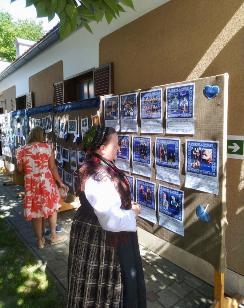 Besonders erfreulich war es, dass die Ausstellung nicht nur in der Schule zu sehen war. Am 7. Juni wurde sie auch im Rahmen des Pfingstfestes auf dem Batthyány-Platz öffentlich präsentiert. Dieses ist eine jährlich stattfindende Veranstaltung, die von der Deutschen Selbstverwaltung in Bohl/Bóly organisiert wird und sich großer Beliebtheit erfreut. In diesem Jahr fand bereits das 15. Pfingstfest statt. Zahlreiche Besucherinnen und Besucher nutzten die Gelegenheit und begaben sich mit großer Neugier auf eine Entdeckungsreise durch die Ausstellung. Gemeinsam suchten sie auf den Bildern nach bekannten Gesichtern, Verwandten, Freunden und natürlich sich selbst. Die Freude war groß, wenn jemand die eigene Hand oder die einer geliebten Person auf einem der Kunstwerke wiedererkannte. Es waren fröhliche und verbindende Momente, die die Ausstellung zu etwas ganz Persönlichem machten.