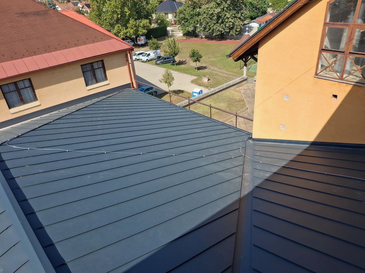 Im 1. Bauabschnitt erfolgte der Austausch der Dächer des Internats-, Küchen- und Mensa-Trakts links vom Haupteingang, während im 2. Bauabschnitt die Eindeckung des dreigeschossigen sowie des Dachgeschoss-Schultrakts rechts vom Haupteingang erneuert wurde. Das im Vergabeverfahren als Gewinner bekanntgegebene Unternehmen „Pilisi Pléh-Boy Kft.“ erfüllte beide Bauabschnitte vertragsgemäß mit Abschluss der technischen Abnahmeverfahren.