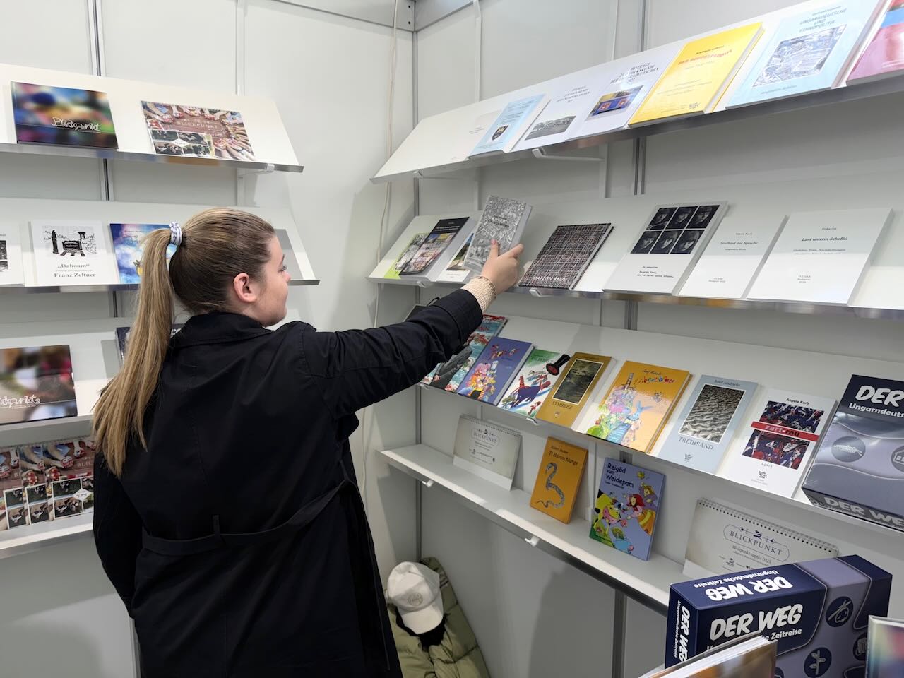 Die Interessenten konnten am ungarndeutschen Stand unter Kinderbüchern, literarischen Werken, Kunstkatalogen, Blickpunkt-Fotobänden und wissenschaftlichen Publikationen stöbern. Das Gesellschaftsspiel „Der Weg“ erweckte weiterhin Neugierde.