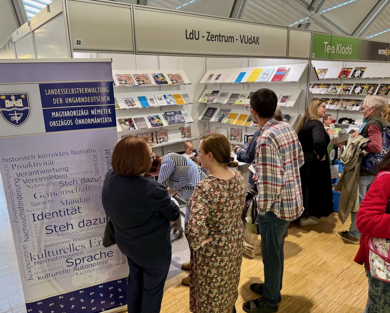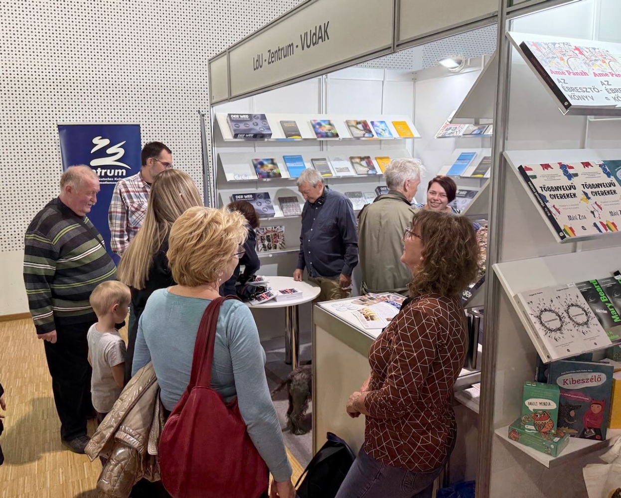 Die Landesselbstverwaltung der Ungarndeutschen (LdU), der Verband Ungarndeutscher Autoren und Künstler (VUdAK) und das Ungarndeutsche Kultur- und Informationszentrum und Bibliothek (Zentrum) hatten auch heuer einen gemeinsamen Stand beim 30. Internationalen Jubiläums-Buchfestival – diesmal im Verteidigungszentrum „Bálna“, in der Nachbarschaft des gemeinsamen Standes „Druckfrisch“ der deutschsprachigen Länder.
