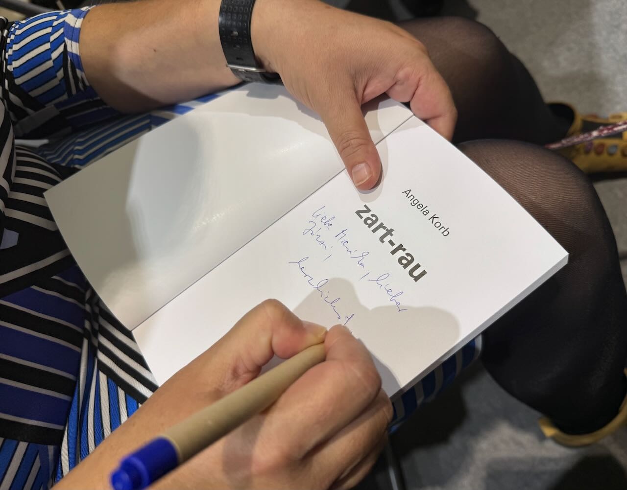 Ihren ersten Lyrikband „zart-rau“ signierte am Samstagnachmittag VUdAK-Mitglied Angela Korb . Er erschien in der Reihe Literatur der VUdAK-Bücher, gefördert von der Donauschwäbischen Kulturstiftung des Landes Baden-Württemberg und dem Zentrum.