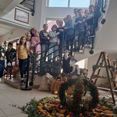 Neben den Bräuchen unserer Ahnen „reisten” wir an den Deutschstunden auch ein bisschen in die DACH-Länder. Unser erstes Fest aus Deutschland war das Erntedankfest, wo wir mit den Kindern eine Erntekrone und einen Ernteteppich bastelten. An den Freudestunden beschäftigten wir uns auch mit der Wichtigkeit des Themas „Danksagung” und hinterließen kleine Nachrichten für Eltern und Freunde, wir sangen gemeinsam auch Erntelieder.