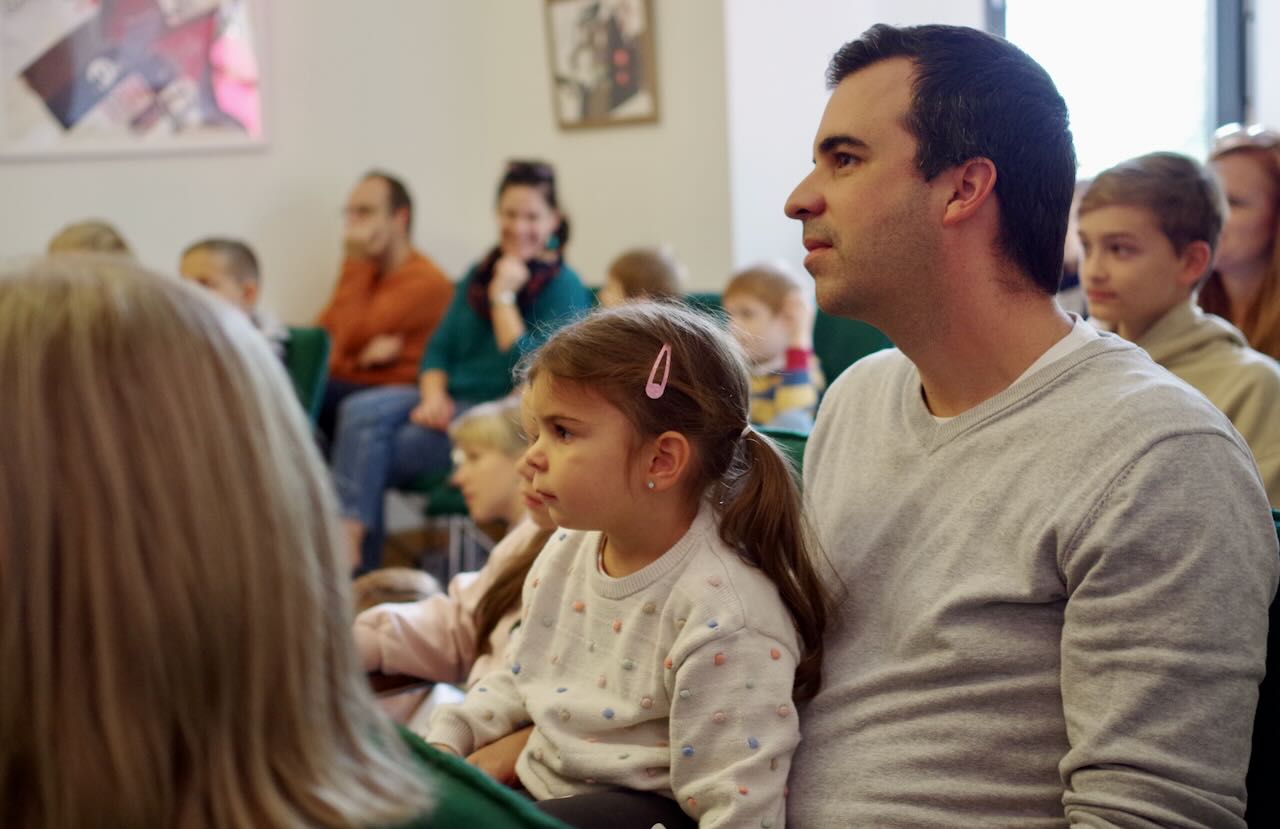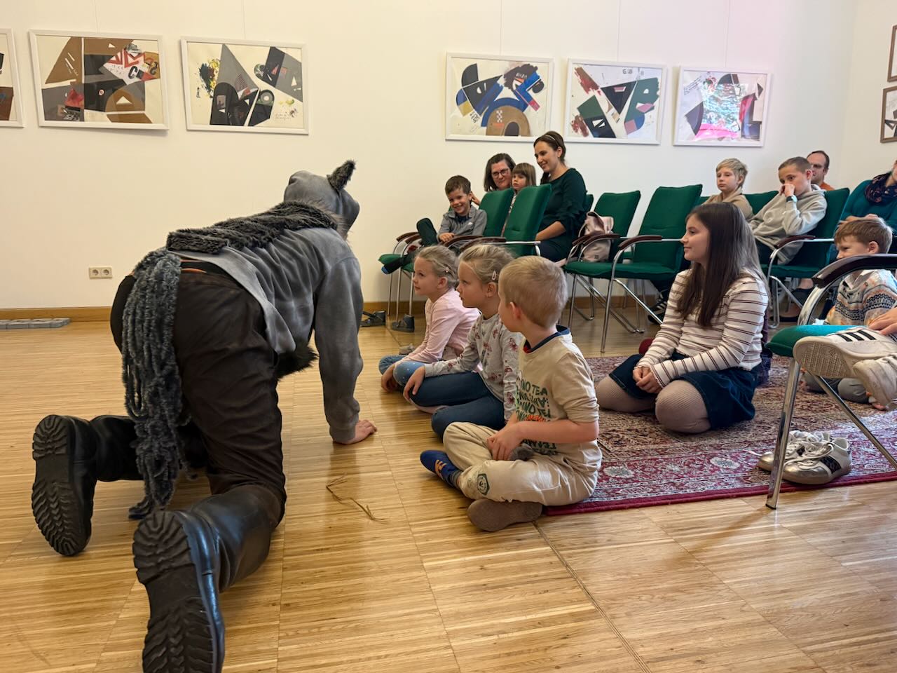 Gabriella Gőbl und Jonas Gundelach, Schauspieler des Ensembles aus Seksard/Szekszárd, zogen die Kinder mit viel Herz, Spielfreude und Energie in die Geschichte hinein. Das Publikum war nicht nur Zuschauer, sondern aktiver Mitgestalter des Geschehens: Die Kinder fieberten mit den Schweinchen mit, bauten gemeinsam ihre Häuschen und halfen dabei, den Wolf auszutricksen.