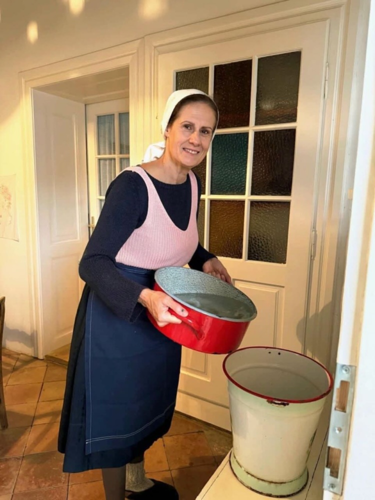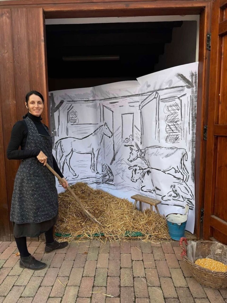 Der abendliche Tagesablauf einer Bauernfamilie wurde in vier Stationen aufgeteilt: Hof und Tiere, Abendessen, Schlafgewohnheiten und Märchenerzählen. Die zehnköpfigen Gruppen wurden von in Werktagstracht gekleideten Klubmitgliedern empfangen und nach einer lustigen Einführung in die abendlichen Hofaufgaben gleich in die Arbeit eingespannt: Sie konnten Heu schaufeln, den Melkstuhl ausprobieren und die verschiedenen Tierfutter kennenlernen. Danach ging es in die Küche: Wasser holen, sich waschen. Nach dem gemeinsamen Beten gab es zum Abendessen mit Kerzenlicht Schmalz- oder Leckwarpraud und warme Milch. Die nächste Station war das hintere Zimmer – wo es um die Schlafgewohnheiten ging. Die Kinder konnten sich ins Bett legen – die Kukrutzlaub-Matratze und eine echte Federdecke ausprobieren. Das Programm endete im Hof, wo die Kinder auf Strohballen sitzend nebst Puffmais ein Märchen von dem Tarianer Mundartdichter Josef Mikonya sich anhören konnten.