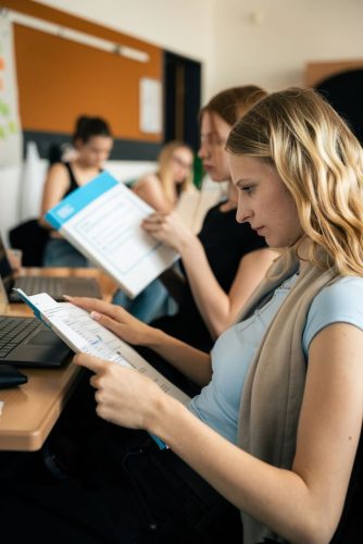 Im aktuellen Schuljahr besuchen insgesamt 19 Auszubildende in zwei Jahrgängen den beruflichen Zweig der Audi Hungaria Deutschen Schule Győr mit dem Ziel, in zwei Jahren die berufliche Qualifikation Fremdsprachige/r Industriekauffrau/-mann zu erwerben. Besonders attraktiv an diesem Ausbildungsformat ist zunächst die Möglichkeit, die in der Schule erworbenen theoretischen Kenntnisse parallel in die Praxis umzusetzen. Gleichzeitig erhalten die Auszubildenden einen wertvollen Einblick in die verschiedenen Abteilungen eines Unternehmens. Überzeugend ist auch die attraktive Ausbildungsvergütung und die Aussicht auf interessante Arbeitsplätze.