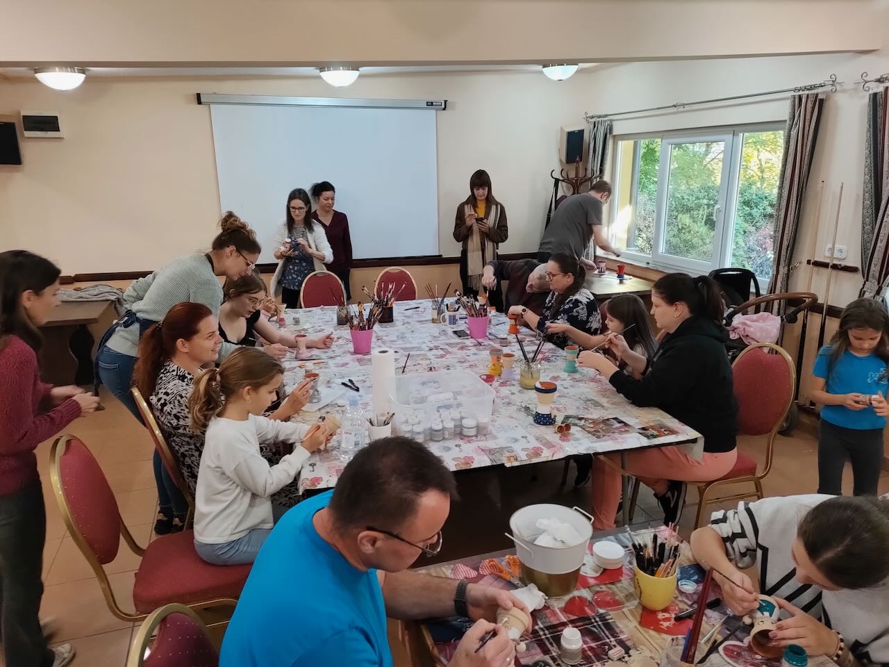 Dieses Jahr wählten wir, also das Team des Vereins für Ungarndeutsche Kinder (VUK), einen neuen Ort für unser traditionelles Familienwochenende, wo uns das nette Personal des Fried Schlosshotels verwöhnte. Fünfzehn Familien aus dem ganzen Land waren in Simonsturm/Simontornya mit dabei, um an verschiedenen gemeinsamen und dem Alter nach getrennten Beschäftigungen teilzunehmen. Auf dem Programm standen ein Kennenlernabend, ein Erfahrungsaustausch über die alltäglichen Herausforderungen und Hilfestellung zur zweisprachigen Kindererziehung, Förder- und Sprachspiele, Bastelstunden, Familienwettbewerbe zum spielerischen Entdecken des Ungarndeutschtums, Gesellschaftsspiele, die unvergesslichen Werwolf-Runden und die großartige zweisprachige Vorstellung Zauberfisch vom Puppentheater Álomzug Társulás.