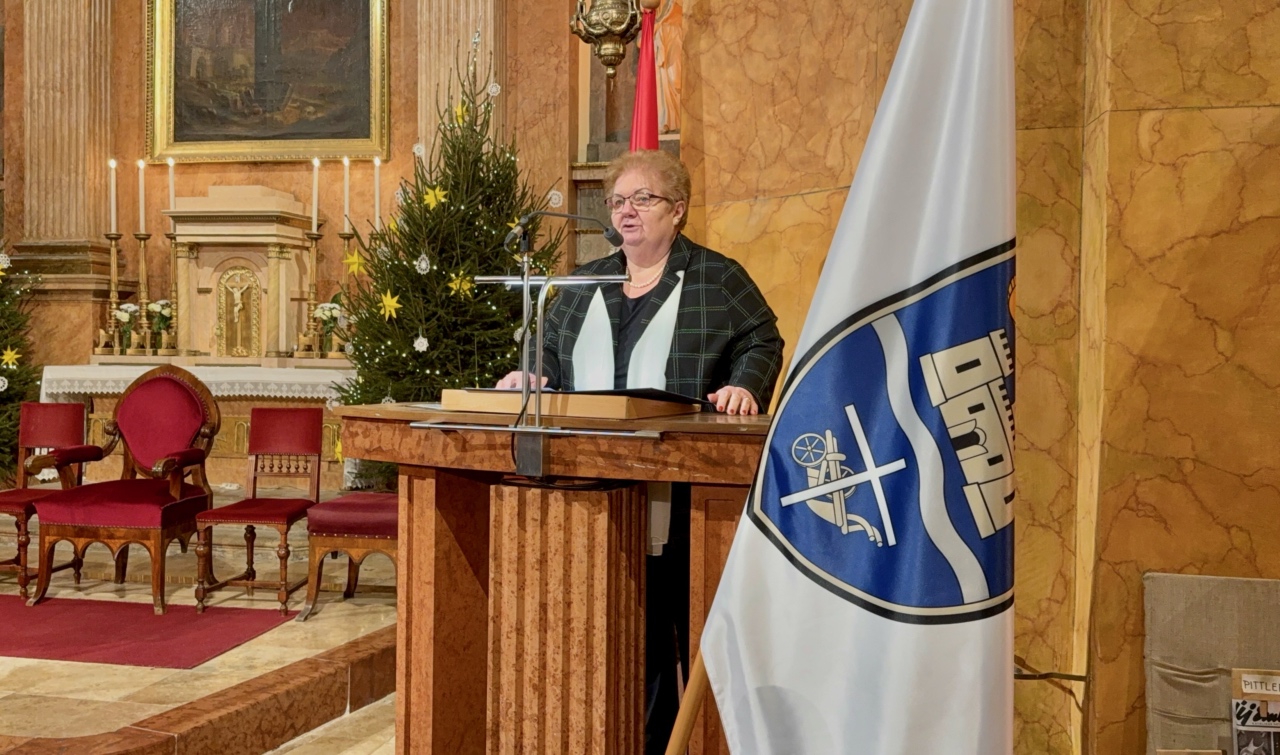 In ihrer Rede rief Ibolya Hock-Englender die Tragödie der Vertreibung der Ungarndeutschen aus der Perspektive der persönlichen wie auch der kollektiven Erinnerung wach und betonte, dass Gedenken nicht allein das Erinnern an historische Fakten bedeute, sondern ebenso das Weiterleben menschlicher Schicksale, von Alltagsbildern und familiären Erzählungen. Anhand der Geschichte ihrer eigenen Familie und ihres Heimatdorfes machte sie deutlich, wie die Vertreibung Gemeinschaften auseinandergerissen habe und welch schmerzlichen Verlust es bedeutete, nicht nur Haus und Hof, sondern auch die Gräber der Vorfahren zurücklassen zu müssen. Erinnerung werde, so betonte sie, erst dann vollständig, wenn sich die großen historischen Zusammenhänge und die persönlichen Erfahrungen gegenseitig ergänzen und der Vergangenheit einen emotionalen Gehalt verleihen. Die Vorsitzende der Landesselbstverwaltung der Ungarndeutschen hob hervor, dass die Zukunft der ungarndeutschen Gemeinschaft davon abhänge, ob Familien, Institutionen und jeder Einzelne Verantwortung dafür übernehmen, ihre Identität zu leben und weiterzugeben – denn die Erinnerung an die Vertreibung sei „mehr als ein Blick in die Vergangenheit – sie ist der Beginn der Zukunft, ein Auftrag für uns alle.“
