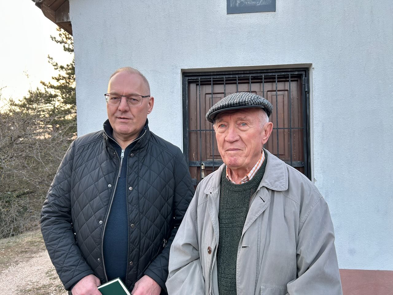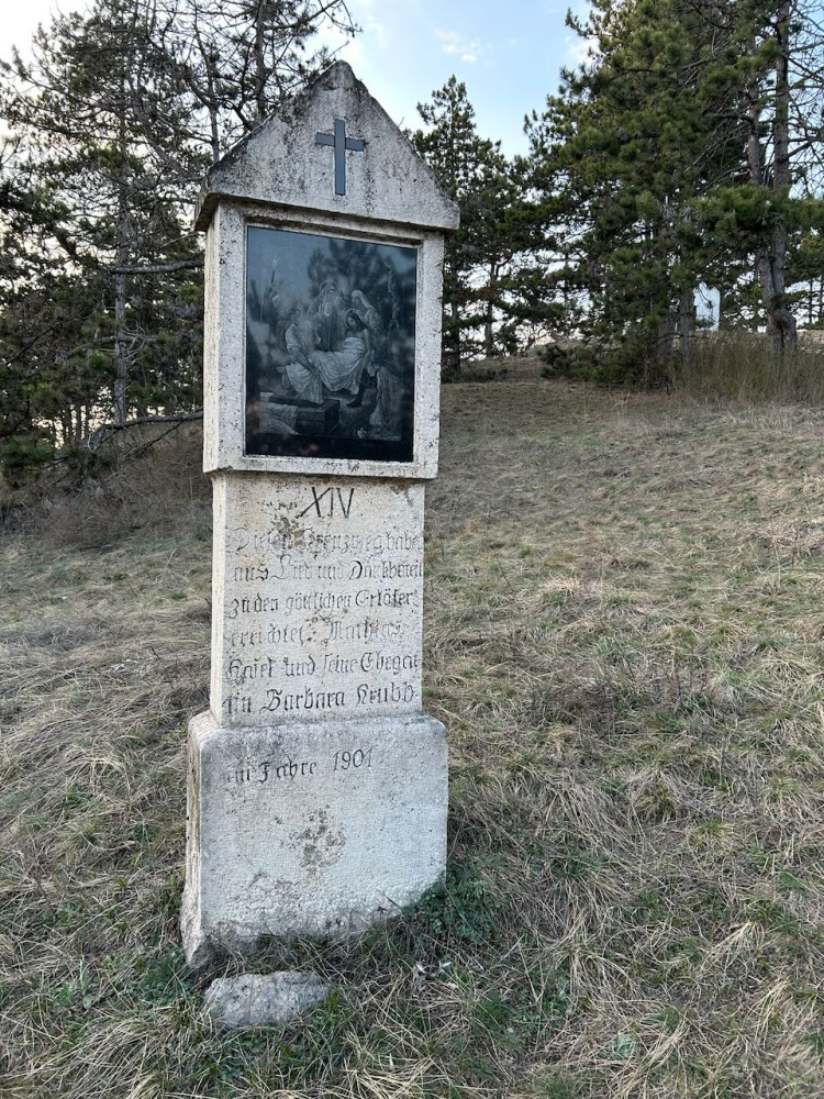 Es ist immer schön, alte Bekannte begrüßen zu können, einige Teilnehmer kennen wir nur vom Sehen, mit anderen haben wir einen engen Kontakt. Der älteste in der Gruppe war Matthias Manherz, der mit seiner Schwester jedes Jahr an dem Kreuzweg teilnimmt, heuer war auch sein Sohn, Zoltán Manherz, mit dabei. Für den 90-jährigen Mann bereitete der steile Kalvarienberg keine Schwierigkeiten, er erreichte mit uns die Kalvarienkapelle und die drei Kreuze oben problemlos. Nach dem „Vaterunser” das wir oben gemeinsam beteten, und als wir schon bergab kamen, erzählte er, dass er vor einigen Tagen mit seiner Frau auf dem Kalvarienberg die Stationen gereinigt, Staub gewischt und die überflüssigen Astchen abgeschnitten habe. Es ist schön, wenn die Gläubigen den Kreuzweg als ihren eigenen betrachten.