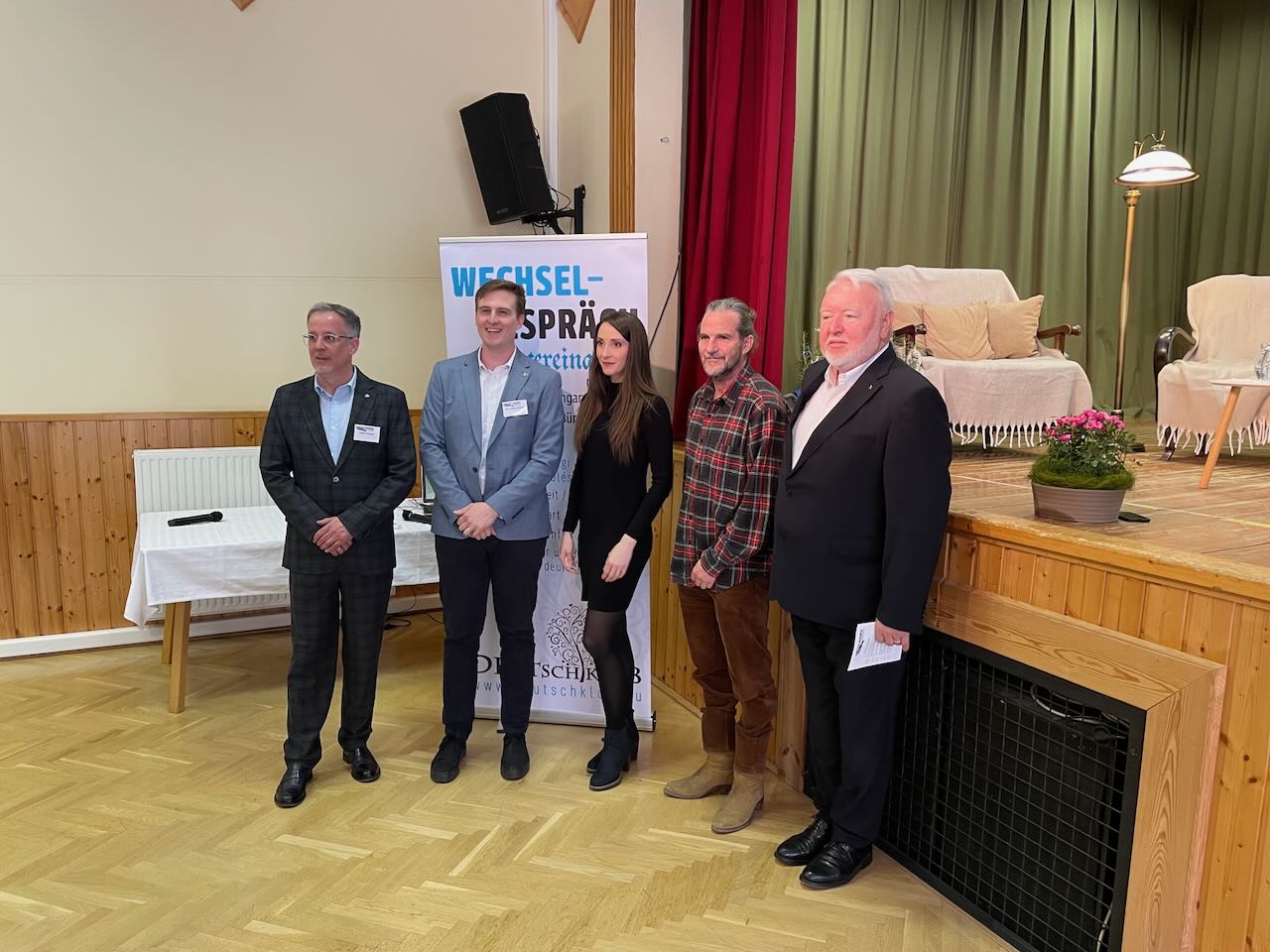 LdU-Vollversammlungsmitglied Richard Schneider befragte drei Persönlichkeiten unterschiedlichen Alters zur Identität und Sprache und führte ein informatives Gespräch mit Winzer Zoltán Heimann (Mitglied der 9. Generation einer 1758 in Seksard ansässig gewordenen Familie), dem in Sankt-Andrä lebenden Musiker und Romanschriftsteller László Kollár-Klemencz aus Hartian sowie mit Schauspielerin und Sängerin Sandra Holczinger aus Sitsch, die jetzt mit Familie in Budapest lebt.