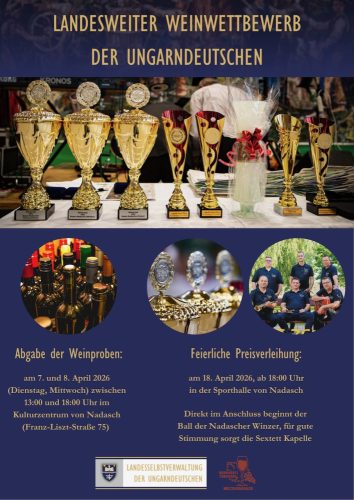 Die Landesselbstverwaltung der Ungarndeutschen und der Nadascher Winzerverein organisieren auch 2026 den Landesweiten Weinwettbewerb der Ungarndeutschen, wo die besten Winzer ausgezeichnet werden.