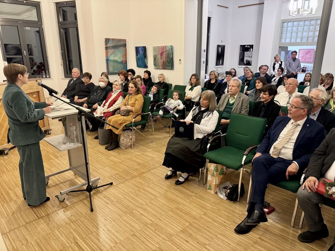 Zu Beginn begrüßte Zentrum-Direktorin Angelika Erdélyi-Pfiszterer die Anwesenden herzlich und stellte die Autorin sowie Margot Wieser vor, die im Rahmen des Programms sowohl ein Gespräch mit der Dichterin führte als auch ausgewählte Gedichte aus dem Band vorlas. Anschließend richtete Johann Schuth, 1. Vorsitzender des VUdAK, ein Grußwort an das Publikum. Er betonte die Freude darüber, dass es gelungen sei, den Band in diesem Jahr zu veröffentlichen, und dankte dem Zentrum für die Übernahme der Druckkosten.