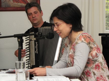 A vegyes – német és Stuttgartban ill. környékén élő magyarokból álló – közönségnek először Mayer Éva mutatta be a XIX. évfolyamában járó interkulturális folyóiratot, majd Hadzsikosztova Gabriella színművész olvasott fel verseket Koch Valériától, Áts Erikától és Korb Angélától magyarul és németül, Ember Máriára, az alapítóra „2000-ben fogunk még élni?” című kisregénye részletének felolvasásával emlékeztünk. Wertecsics Szlobodán harmonikaművész hol aláfestette a felolvasást, hol átvezetett játékával egyik műből a másikba. Hadzsikosztova hatalmas sikert aratott dalaival. Felolvasta a cigány Szécsi Margit egyik önéletrajzi írásának és Radevszki Teodor bolgár író egyik novellájának részletét.