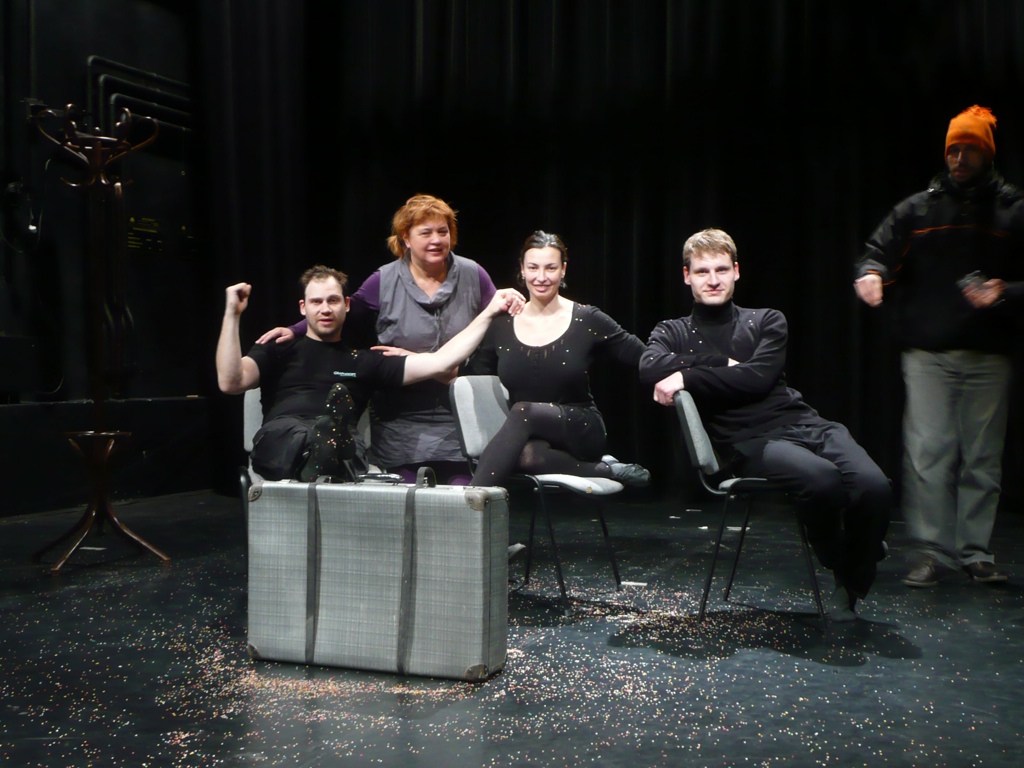 A háromnapos munka maradandó eredménye egy húszperces gyermekelőadás lett: a Holle anyó, amelyet a társulat azon frissiben be is mutatott első gyermekközönségének. – Az előadást olyan keretbe helyeztük, mintha mi magunk is gyerekek lennénk – meséli Lotz Kata. – Beszállunk egy mesevonatba, aztán „játszásiból” a mese szereplőivé válunk, majd a végén újból gyerekként leszűrjük a történet tanulságait. Ezzel a trükkel a piciket az első percben megnyertük, és végig velünk maradtak a közös játékban.
