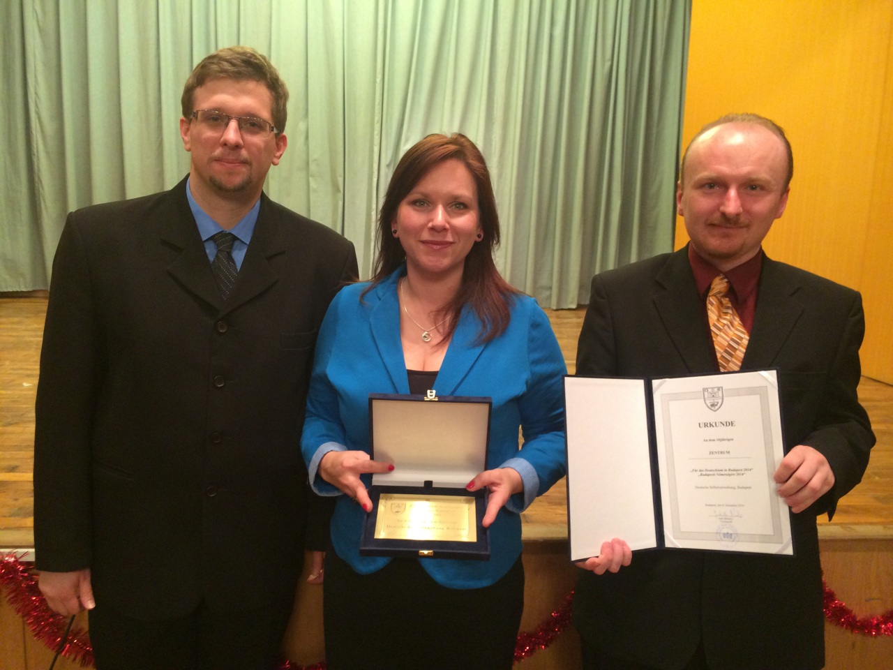 Az évet nem várt sikerrel zártuk: a Fővárosi Német Önkormányzat adventi rendezvényén a Zentrumot a rangos „Budapest Németségéért” díjjal tüntették ki. Az elismerés arra biztatja a Zentrum-csapatot, hogy ugyanazzal a lelkesedéssel folytassa munkáját a továbbiakban is.