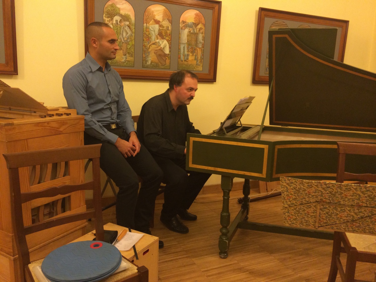 Az együttes négy tagja a korszak tradicionális hangszereit szólaltatta meg. Tóth Mónika barokk hegedűből „cum laude” minősítésű diplomát szerzett Palermóban, rendszeres résztvevője a legjobb nevű európai kamarazenei fesztiváloknak. Christoph Urbanetz Luganóban tanult, a Grazi Zeneakadémia tanára a viola da gamba virtuóza. Dinyés Soma karmester és orgonista, ezúttal portatív orgonán és klavicsembalón, míg a gitárosként is híres Davidovics Igor a lanthoz hasonlító teorbán játszott.