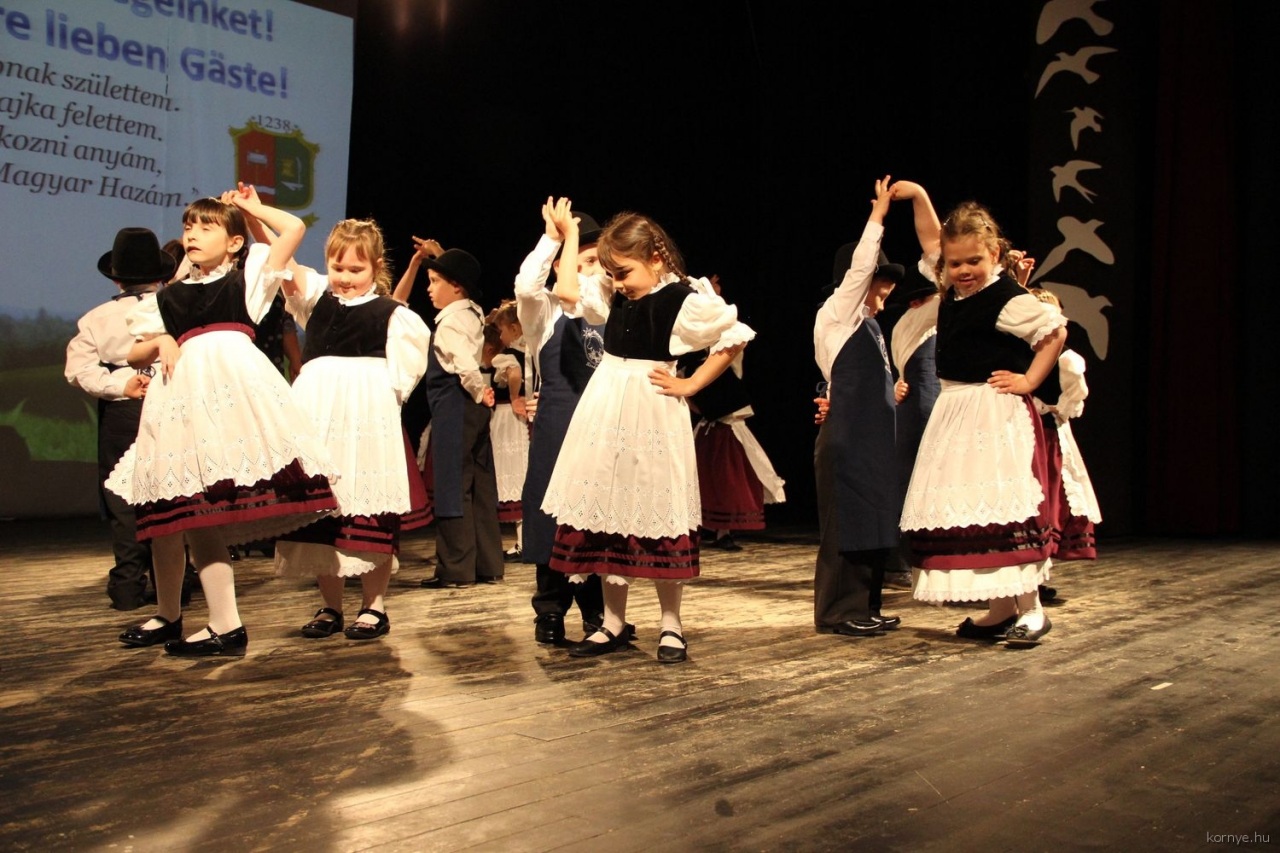 Tirhold Kármentől, a szervező Német Nemzetiségi Önkormányzat Környe elnökétől a születésnapi programon az is elhangzott: a gyerekek ruhája, amely régi hagyományos környei viselet szerint készült, Tőberling Imréné keze munkáját dicséri.