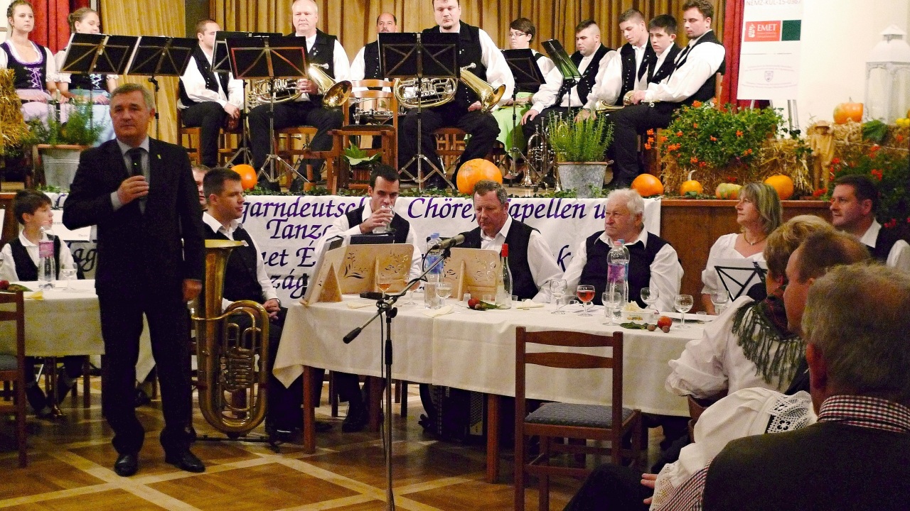 Heilig Ferenc, a Magyarországi Német Ének-, Zene- és Tánckarok Országos Tanácsának tiszteletbeli elnöke, egyúttal az est moderátora felkérte Végerbauer Richárdot, hogy mondjon áldást. Ezután köszöntötte a díszvendégeket, köztük Fenyves Pétert, Mór polgármesterét, Czachesz Gábor alpolgármestert és az Erdei Ferenc vezette Német Nemzetiség Önkormányzat tagjait. Külön köszönetet mondott Möllmann Erzsébetnek (Möllmann ház). Üdvözölte a rendezvény szervezőit, a Landesrat munkatársait, élükön Ledényi Zsuzsával. Köszöntötte a környező falvakból és a távolabbról érkezetteket (Veszprémből 40 fő érkezett) és minden, a színpadon, vagy a színfalak mögött tevékenykedő közreműködőt is.