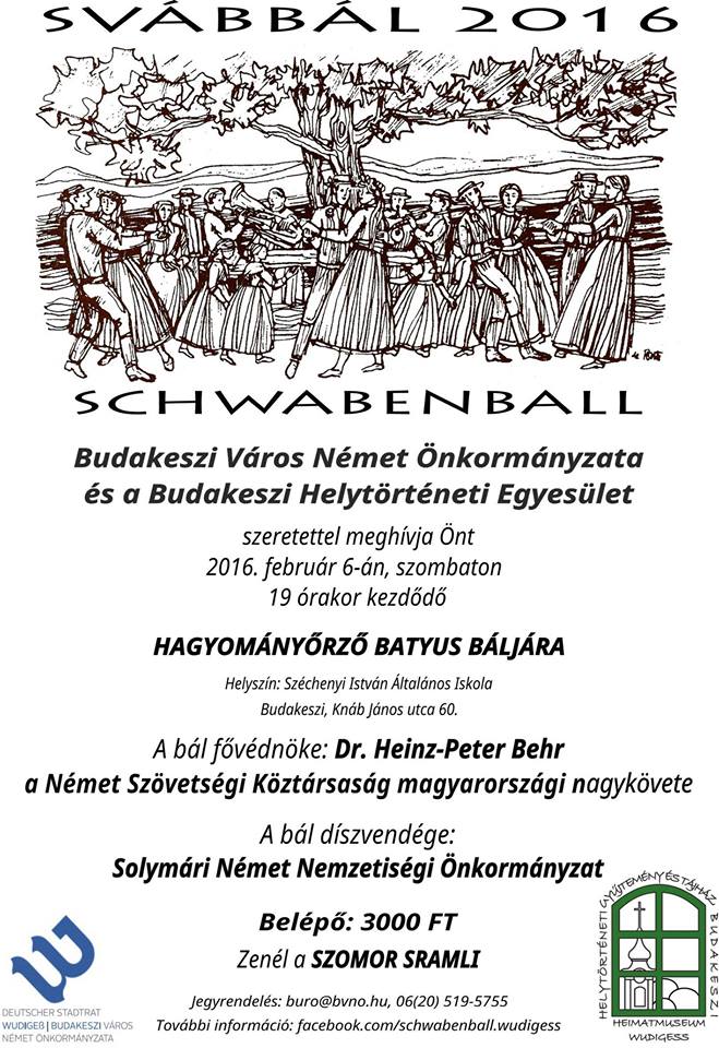 A Magyarországi Németek Általános Művelődési Központja meghívja Önt és partnerét a 2016. február 6-án kezdődő sváb bálra.