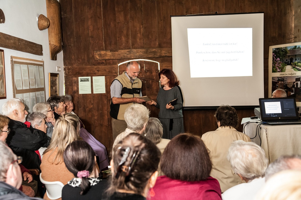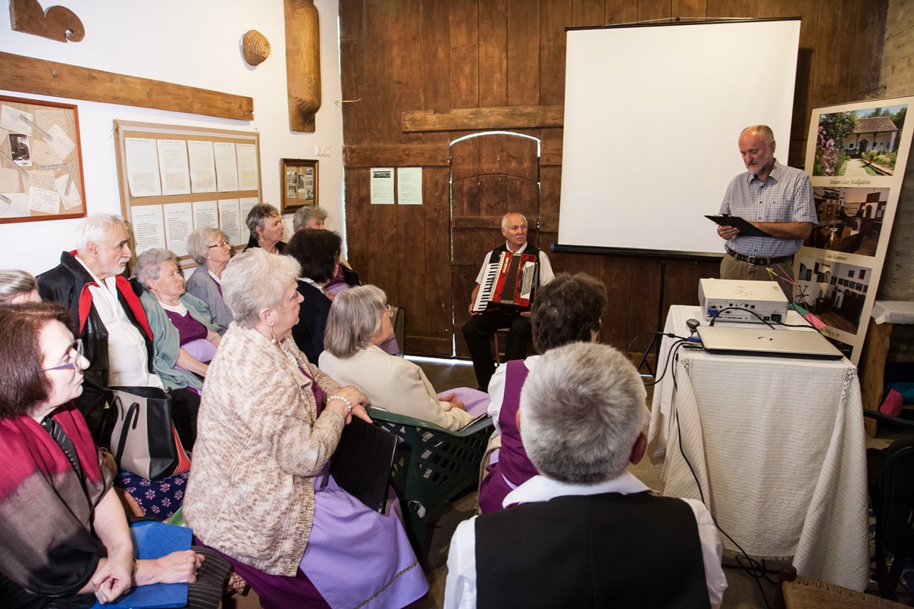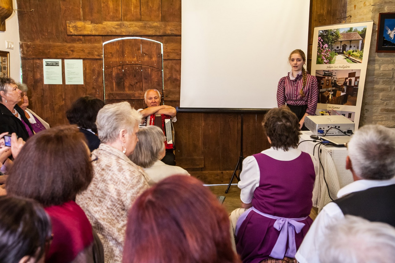 De ez még mindig csak a kezdete a mesének, mert nemcsak megmentettek egy épületet az utókor számára, hanem lelkes, művészetszerető emberek lévén, megalapították a galériát: Johann Lux Stallgelerie néven. A galéria rendezvényeinek sora is már elég hosszú, ebbe csatlakozhattunk bele, most a hétvégén. A rendezvény a MAGYARORSZÁGI NÉMETEK NAPJA címet kapta. A bevezetőt Csorba Károly, a házigazda mondta és ismertette a ház és a galéria történetét. Őt követte Wolfartné Stang Mária megemlékezése a kitelepítésről. Majd egy érdekfeszítő előadást halhattunk dr. Erb Máriától: „A magyarországi német nyelvjárások, kalaznói és murgai dialektus” címmel. Ezt követte a hármas kiállítás megnyitó. Képekkel: „Élő hagyomány-Nagynyárád” Máy Lydia és Péter fotóművész házaspár kiállítása, textíliákkal: Kékfestő kiállítás Nagynyárádról (bemutatta: Erbné Merkler Csilla), Kalaznói viseletek (autentikus állapotban megmaradt öltözetek bemutatása).