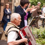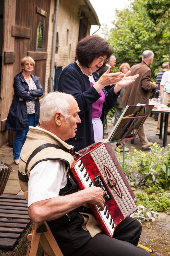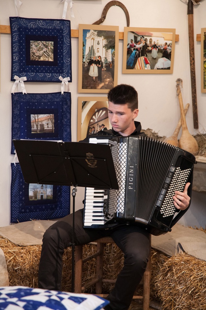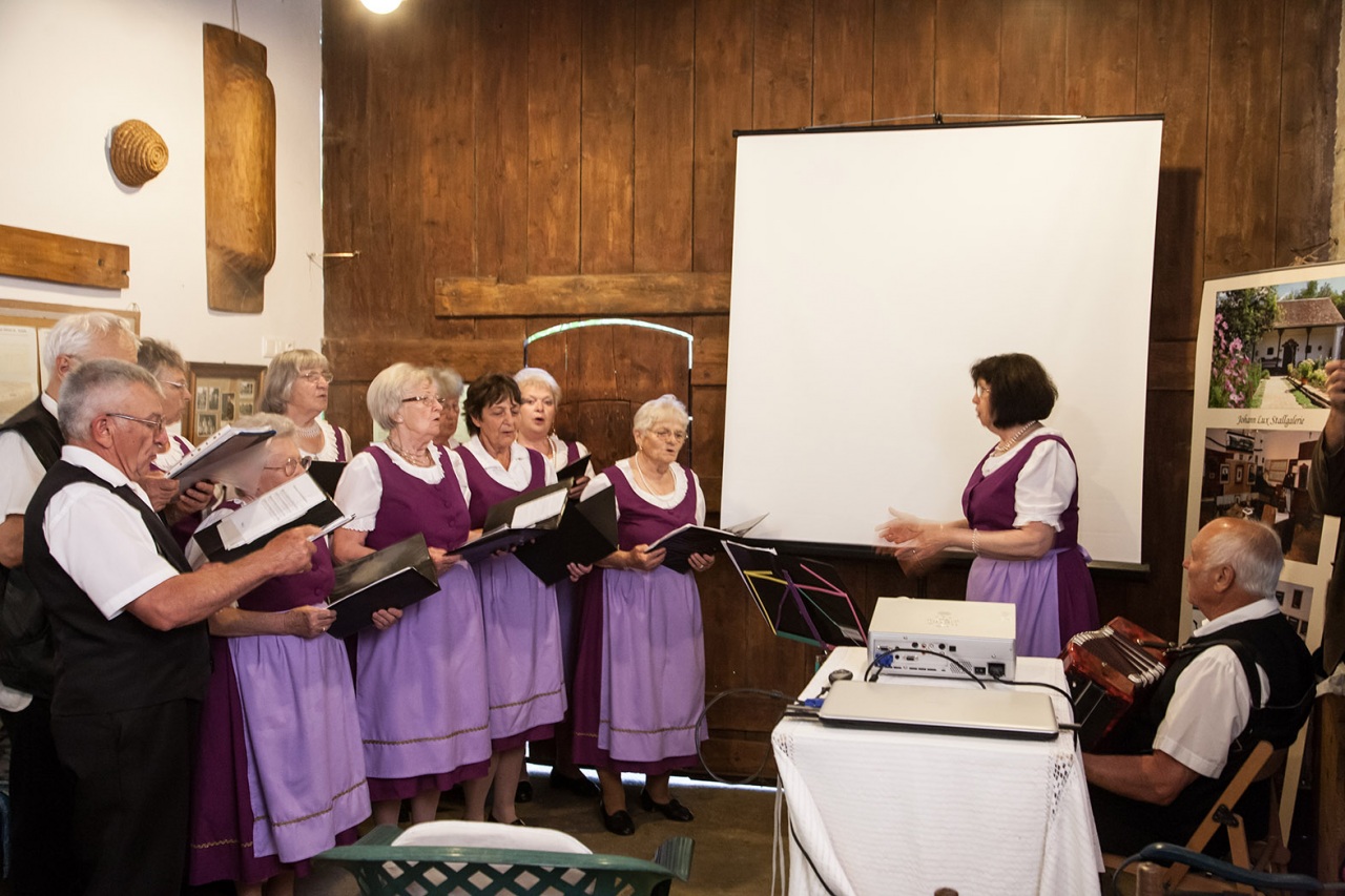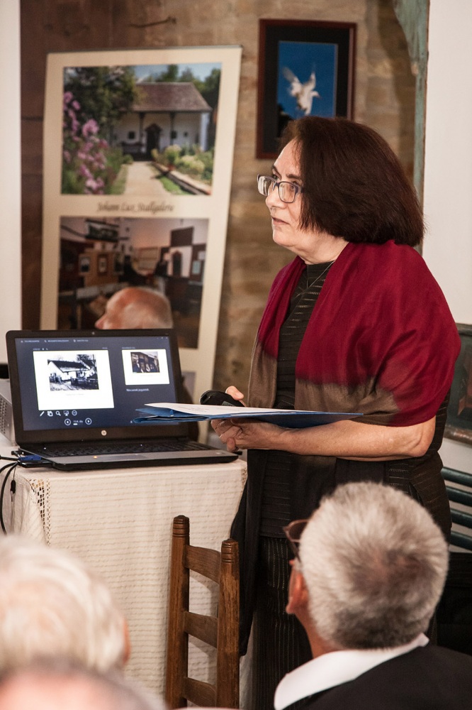 De ez még mindig csak a kezdete a mesének, mert nemcsak megmentettek egy épületet az utókor számára, hanem lelkes, művészetszerető emberek lévén, megalapították a galériát: Johann Lux Stallgelerie néven. A galéria rendezvényeinek sora is már elég hosszú, ebbe csatlakozhattunk bele, most a hétvégén. A rendezvény a MAGYARORSZÁGI NÉMETEK NAPJA címet kapta. A bevezetőt Csorba Károly, a házigazda mondta és ismertette a ház és a galéria történetét. Őt követte Wolfartné Stang Mária megemlékezése a kitelepítésről. Majd egy érdekfeszítő előadást halhattunk dr. Erb Máriától: „A magyarországi német nyelvjárások, kalaznói és murgai dialektus” címmel. Ezt követte a hármas kiállítás megnyitó. Képekkel: „Élő hagyomány-Nagynyárád” Máy Lydia és Péter fotóművész házaspár kiállítása, textíliákkal: Kékfestő kiállítás Nagynyárádról (bemutatta: Erbné Merkler Csilla), Kalaznói viseletek (autentikus állapotban megmaradt öltözetek bemutatása).