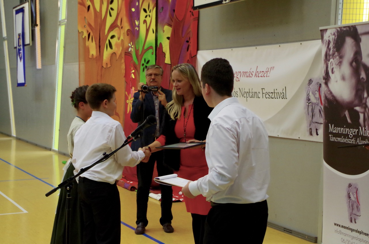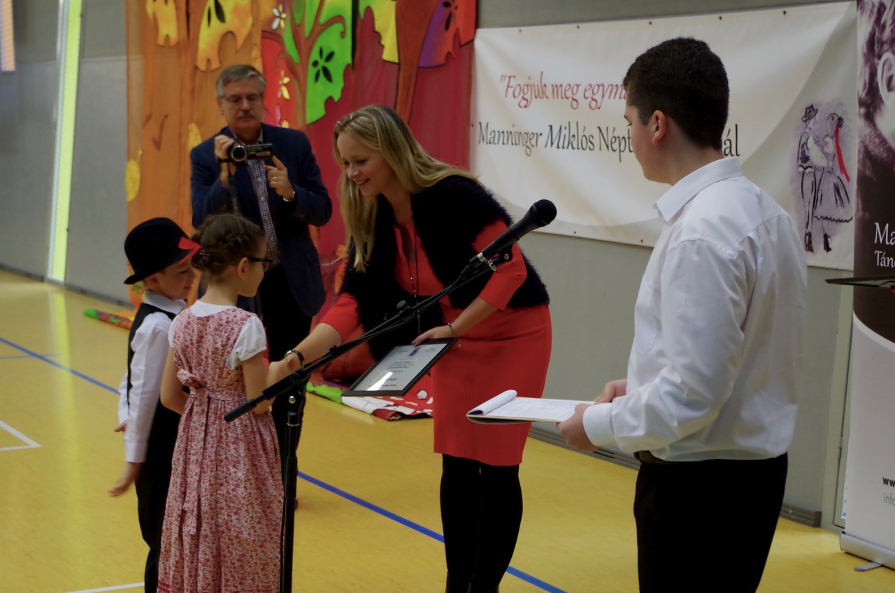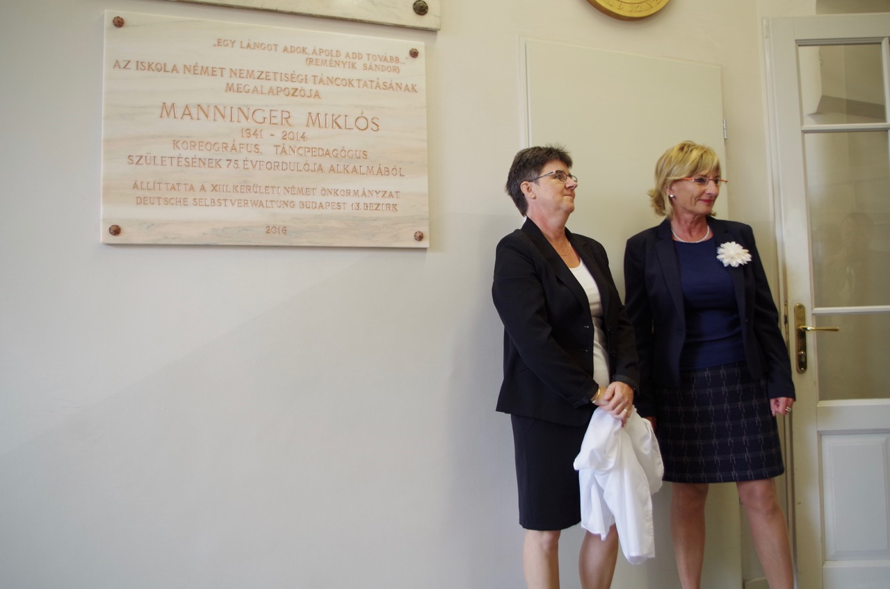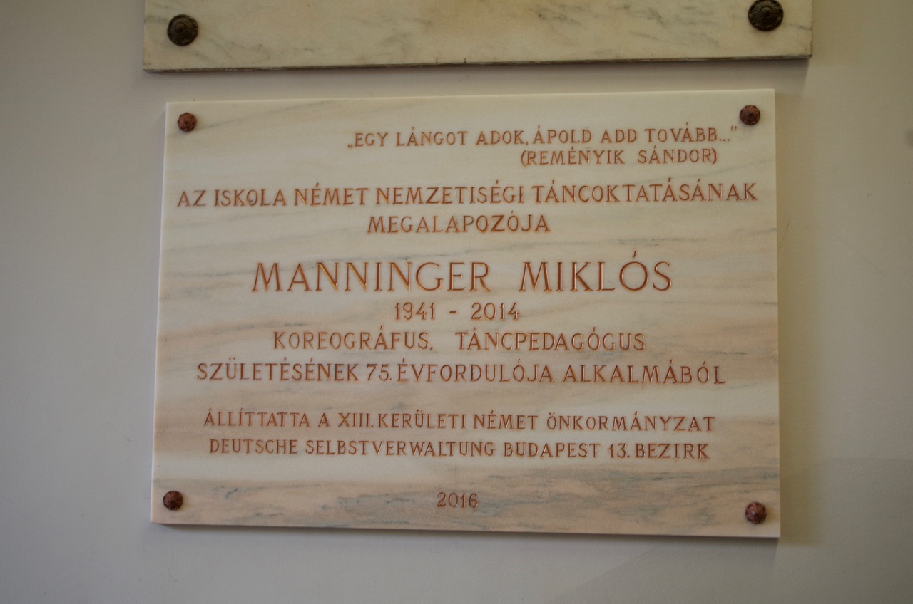 Varsányiné Salgó Julianna, az iskola korábbi igazgatója bevezette a megjelenteket az oktatási intézmény és az ismert magyarországi német táncpedagógus közös történetébe, mely 20 évvel ezelőtt vette kezdetét. Az 1996/1997-es tanévben indult el a német nemzetiségi oktatás és Manninger Miklós volt a megalapítója a nemzetiségi táncoktatásnak. Vezetésével az iskolások számos nemzetiségi és néptáncos találkozón vettek részt az évek során, felléptek többek között Szigetújfalun és Alsógallán is. Nem tett különbséget tehetséges és kevésbé tehetséges táncos között, azt vallotta ugyanis, ha valaki egész évben készült, az hadd lépjen fel.