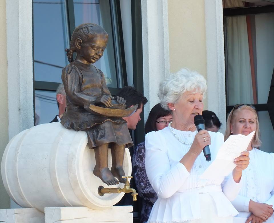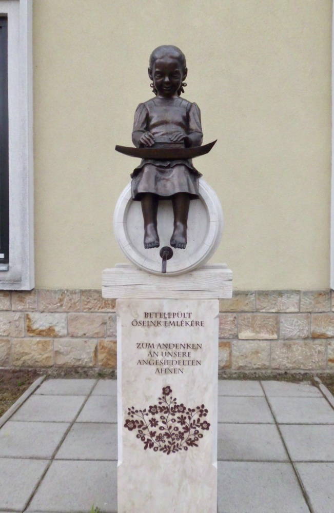 A nyárköszöntő sváb napok tetőpontja a kultúrház előtt, a betelepítés emlékére felállított emlékmű, a kúton ülő sváb kislány névadó ünnepsége volt: a kislány neve Rézi lett.