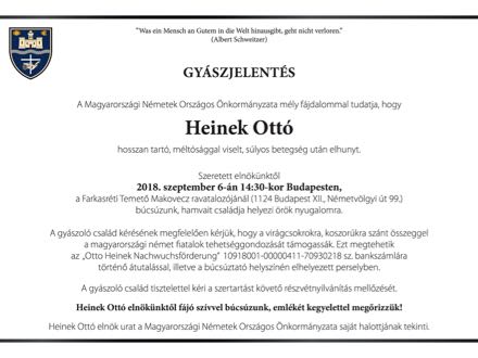 Heinek Ottó elnökünktől fájó szívvel búcsúzunk, emlékét kegyelettel megőrizzük!