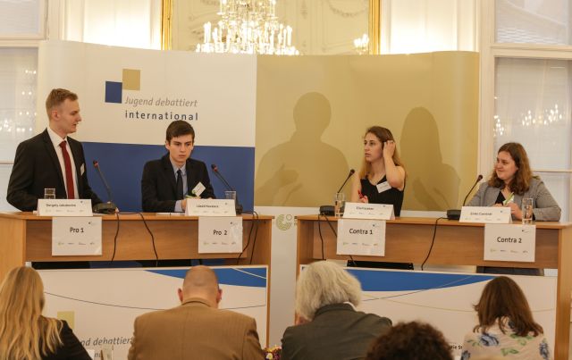 A németül legjobban vitázó négy magyar fiatal a Vitázik a világ ifjúsága nemzetközi vitavetélkedő május 30-án Budapesten tartott magyarországi döntőjében heves vitát folytatott a következő kérdésről: