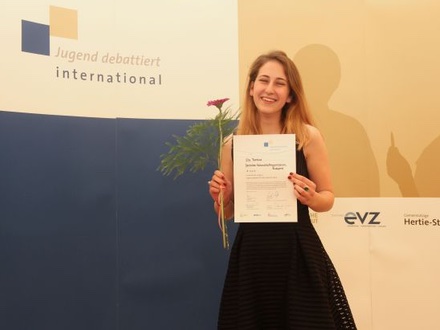 A németül legjobban vitázó négy magyar fiatal a Vitázik a világ ifjúsága nemzetközi vitavetélkedő május 30-án Budapesten tartott magyarországi döntőjében heves vitát folytatott a következő kérdésről: