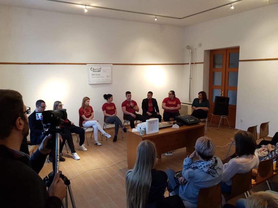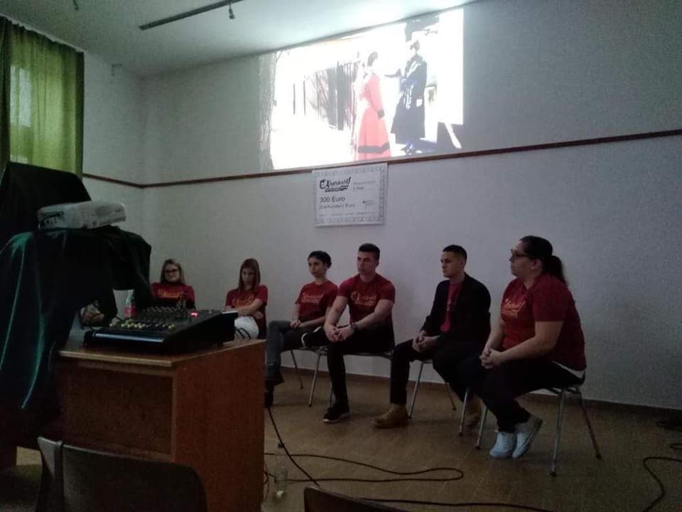 A vetítésen jelen voltak az alkotók, Nagy Kata, Gál Viktória, Gál Zsófia, Nagy György, Barth Botond, Schuckert György, akik a kalocsai Szent István Gimnázium, illetve a bajai Magyarországi Németek Általános Művelődési Központja diákjai és a projekt vezetője, Csordás Krisztina, valamint a beszélgetésen részt vett a verseny főszervezője, a Zentrum igazgatója, Ambach Mónika is.